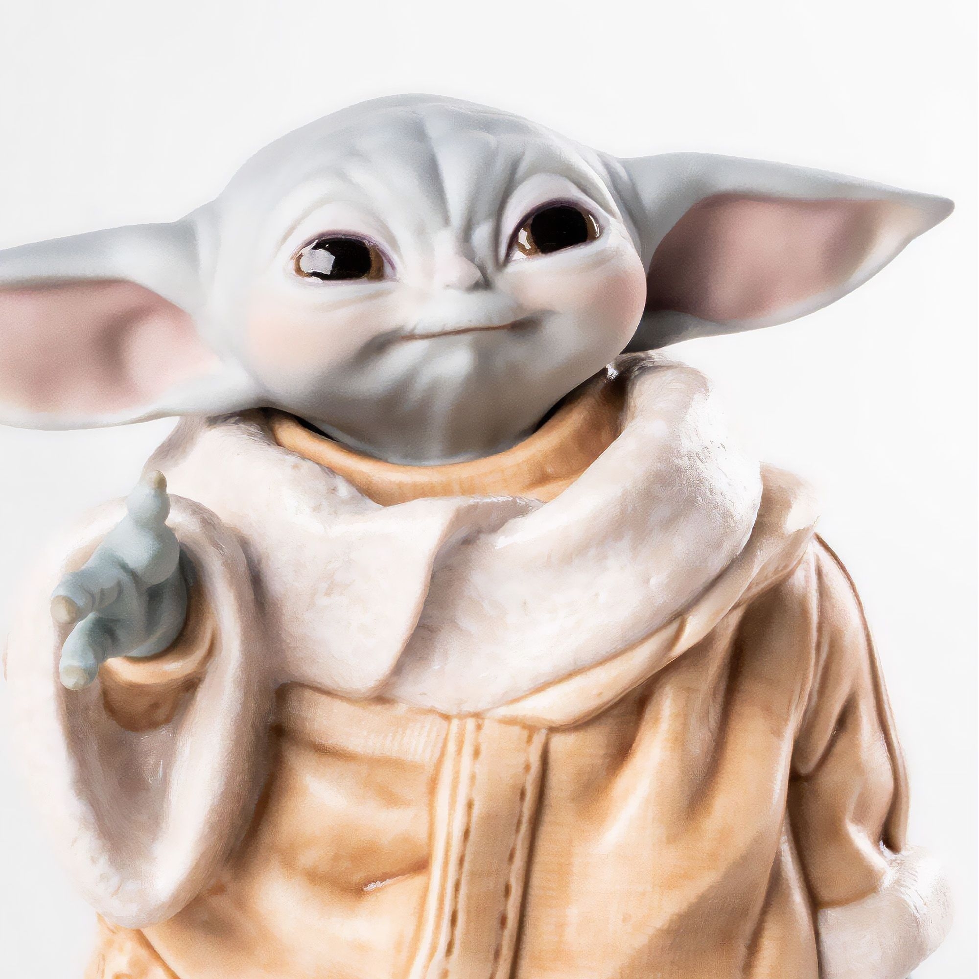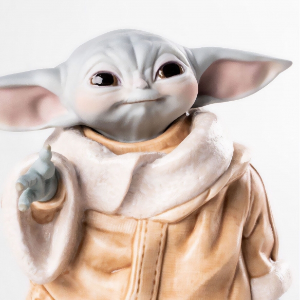 La scultura Grogu™ è una meravigliosa rappresentazione dell'amato personaggio di The Mandalorian™ della saga di Star Wars™, realizzato interamente in porcellana, materiale ammirato per la sua resistenza e longevità. Grogu è un personaggio dolcissimo e simpaticissimo che ha subito conquistato i cuori di tutti gli amanti della saga, e la maestria scultorea colpisce per l’incredibile somiglianza con il personaggio e per le diverse tecniche decorative impiegate, come per il viso, le mani e le orecchie che sono state decorate con colori liquidi per mettere in risalto tutti i dettagli della pelle. L'unico dettaglio lucido di questa scultura sono gli occhi di Grogu, con l'obiettivo di dare vivacità e intensità allo sguardo. Gli abiti di questa bellissima scultura sono stati realizzati con colori molto chiari, quali color cammello e bianco sporco. Una curiosità: il bianco sporco è stato prima applicato e poi rimosso, per dare questo senso di profondità. Questa scultura è sia un omaggio a un personaggio iconico, che un pezzo di design di spicco in qualsiasi collezione di arte cinematografica: perfetto da esporre in una libreria, in ufficio domestico o commerciale, oppure in uno spazio abitativo, attirando l'attenzione dei fan di Star Wars e degli amanti del design e diventando un vero e proprio punto focale dell'ambiente in cui è posizionato. Scultore: Eva María Cuerva.