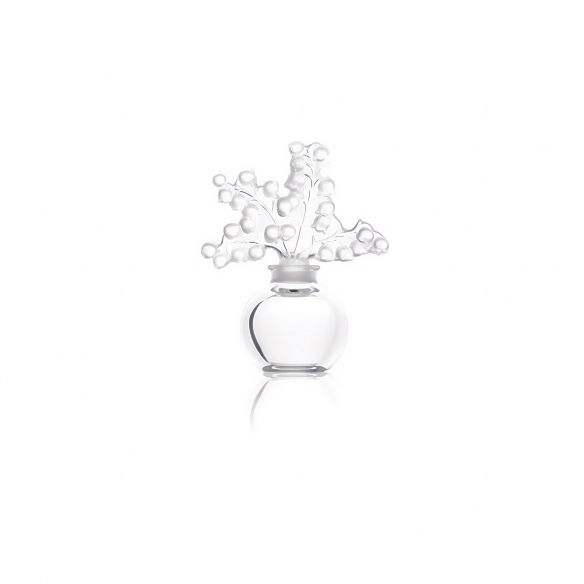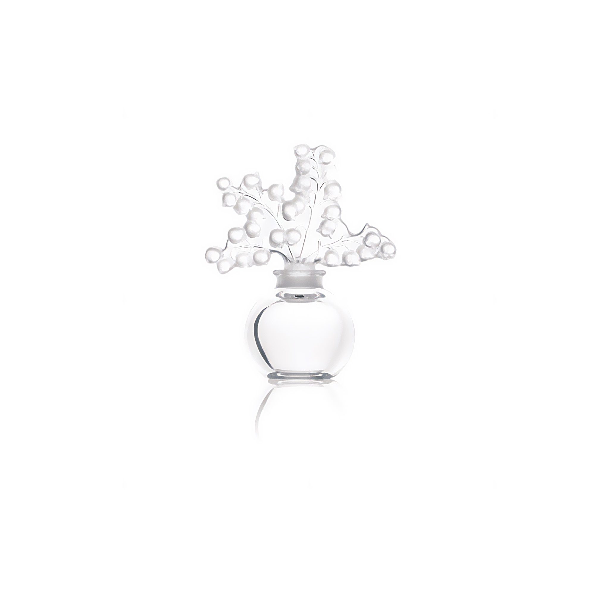 La bottiglia di profumo Clairefontaine è un riferimento al famoso giardino situato nel sud-ovest di Parigi, in Francia, ed è un esempio straordinario del talento artistico e della maestria degli artigiani di Lalique, realizzato in cristallo trasparente. Il design elegantissimo di Clairefontaine è caratterizzato da linee pulite e una silhouette che evoca la forma di un fiore; infatti, il giardino Clairefontaine è noto per la sua bellezza naturale e le sue vaste distese di fiori aromatici. Inoltre, i tappi della bottiglia di profumo rappresenta 4 rametti di mughetto, rifinito con la massima attenzione e accuratezza, risultando una vera opera d'arte che celebra la bellezza della natura. Questo tappo non solo sigilla il profumo ma diventa un elemento decorativo di spicco, simbolo dell'eleganza e della raffinatezza di Lalique. La bottiglia di profumo Clairefontaine porterà lusso a qualsiasi spazio della tua casa: può fungere anche da oggetto decorativo in salotto o in camera da letto. Perfetta come idea regalo per inaugurazioni o altre occasioni speciali, questa bottiglia esprime il meglio dell'arte e del design francese, mantenendo vivo il legame di questo marchio con la realizzazione di oggetti esteticamente eleganti e di alta qualità. Disegnata da René Lalique nel 1931.