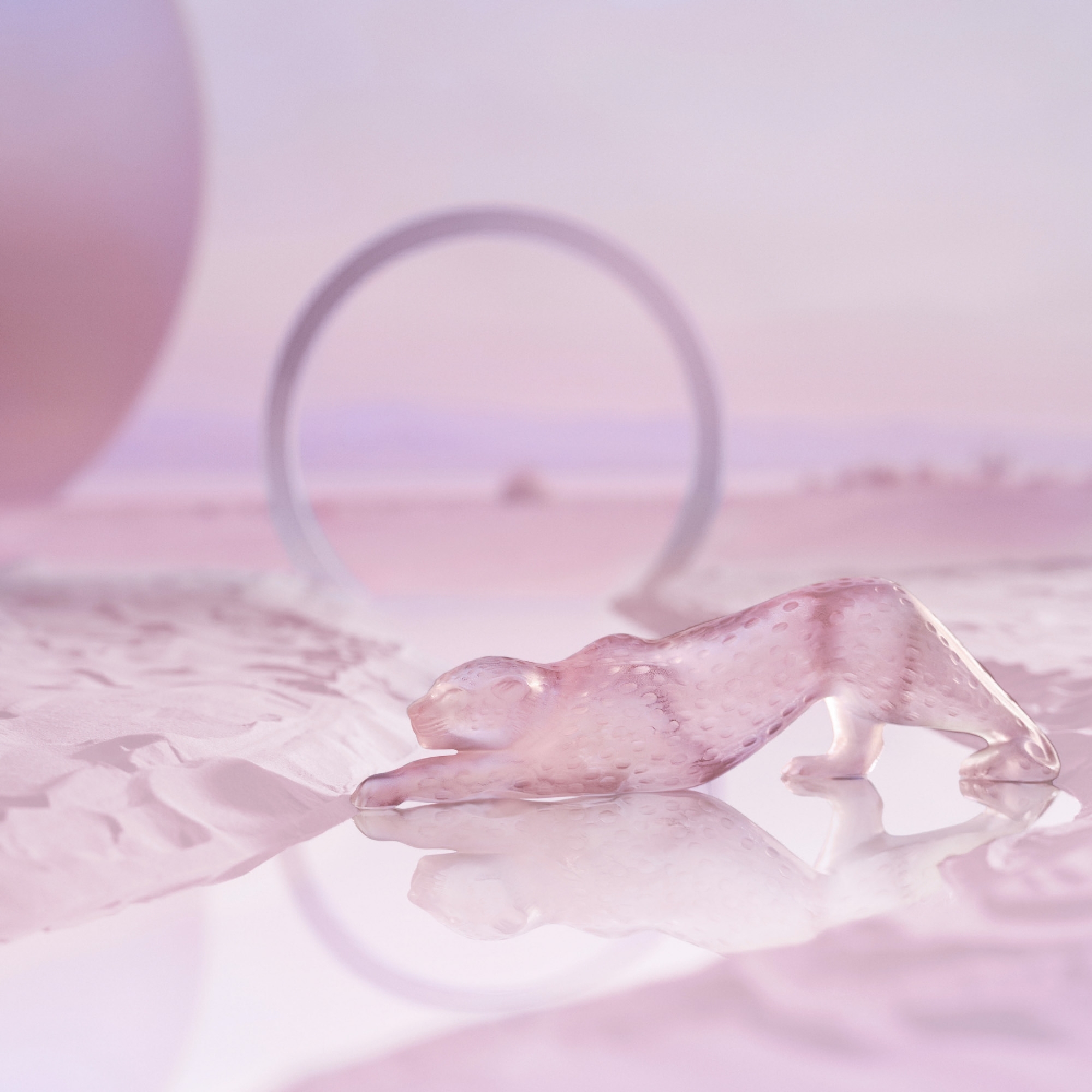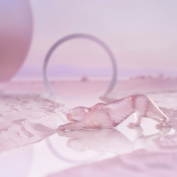 Lalique Scultura grande in cristallo Panthère Zeila Cristallo rosa