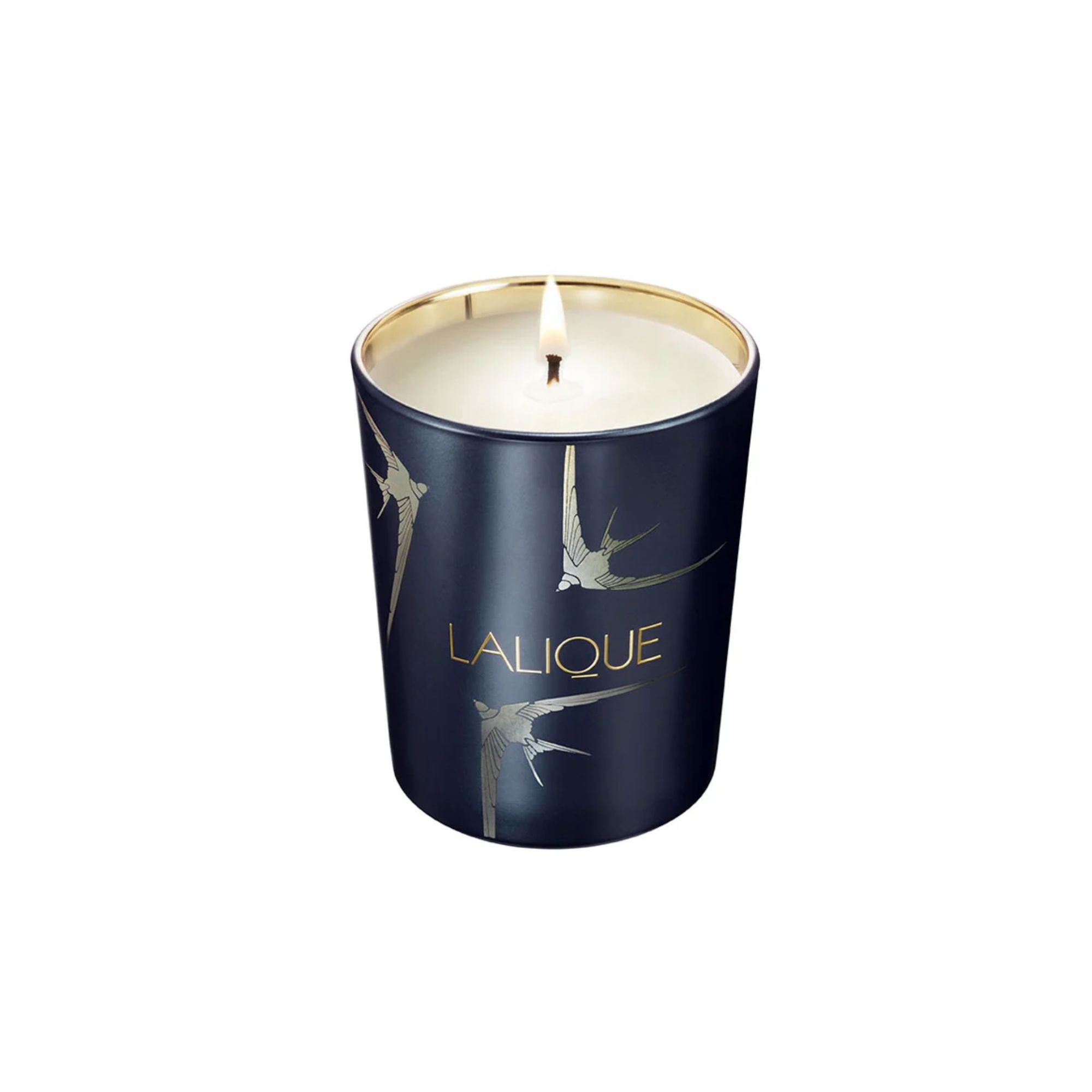 La candela profumata The Night, Nairobi - Kenya 190 g - è una celebrazione olfattiva realizzata da Lalique che trasporta i sensi direttamente nel fantastico mondo dei sogni e dei desideri. Il candeliere di questa favolosa opera d'arte olfattiva è in vetro laccato blu, e ha delle decorazioni con delle rondini dorate che volano verso l'Africa. La candela cattura l'essenza del Kenya con un profumo che unisce la dolcezza della prugna e le note agrodolci dell'amaretto, arricchito da accenti floreali di gelsomino e dal tocco esotico dell'iris. Questo mix olfattivo è ulteriormente intensificato dalle sfumature amare e speziate del caffè e del vetiver, evocando la ricchezza e la varietà del paesaggio africano. Inoltre, con la durata di 40/50 ore, la candela assicura un piacere olfattivo prolungato; il candeliere può essere anche utilizzato come oggetto decorativo dopo aver rimosso i residui di cera. Questo prodotto di decorazione è perfetto per arricchire qualsiasi spazio della tua casa sia con il suo design unico che con il suo profumo inimitabile. Perfumer: Serge De Oliveira per Lalique.