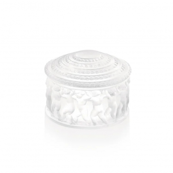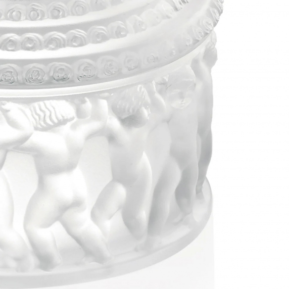 La scatola Enfants è un elegante accessorio realizzato da Lalique in cristallo ed è un vero e proprio capolavoro artistico che incanta per la minuziosa attenzione ai dettagli. Questa preziosa scatola ha un design che cattura l'essenza dell'innocenza e della meraviglia infantile e rappresenta una farandola di bambini, le cui curve giocano con le qualità satinate del cristallo trasparente. La scatola è allo stesso tempo robusta e delicata, la cui trasparenza è appena oscurata da un velo che ne sottolinea la forma senza comprometterne la funzionalità. Enfants ha la capacità di adattarsi sia come elemento di decoro, che come contenitore prezioso di gioielli e altri piccoli tesori. La sua presenza nella stanza aggiunge un tocco di charme e raffinatezza: che sia posizionata in camera da letto oppure sulla scrivania in ufficio, Enfants diventa un punto focale inimitabile.