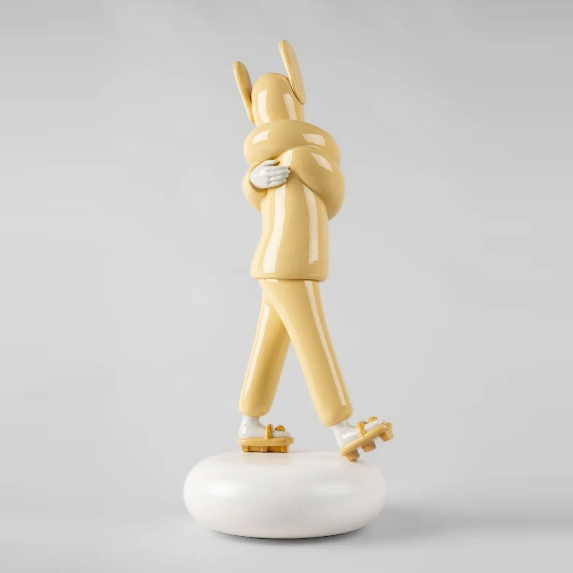 La scultura Embraced Yellow è una bellissima opera in porcellana nata dalla collaborazione fra Lladró e Jaime Hayon. Questa scultura è un'opera che ci parla della cura di sé e dell'armonia, e la scelta del colore giallo simboleggia la gioia, l'ottimismo e la felicità. Capace di trasmettere una sensazione di calore e accoglienza, la scultura Embraced rappresenta un abbraccio tenero e intimo, un momento che illustra affetto e connessione, e si integra perfettamente a qualunque tipologia di contesto: che sia posizionata sulla scrivania in ufficio, sul tavolino in salotto, oppure sul comò in camera da letto, Embraced aggiunge un tocco di sottile eleganza. La superficie liscia e lucida della porcellana riflette delicatamente la luce, accentuando le curve sinuose della scultura e il dinamismo dell'abbraccio. La scultura Embraced Yellow di Lladró è molto più di un semplice oggetto decorativo: è una celebrazione dell'arte della porcellana, un vero e proprio gioiello. Disegnata da Jaime Hayon per Lladró.