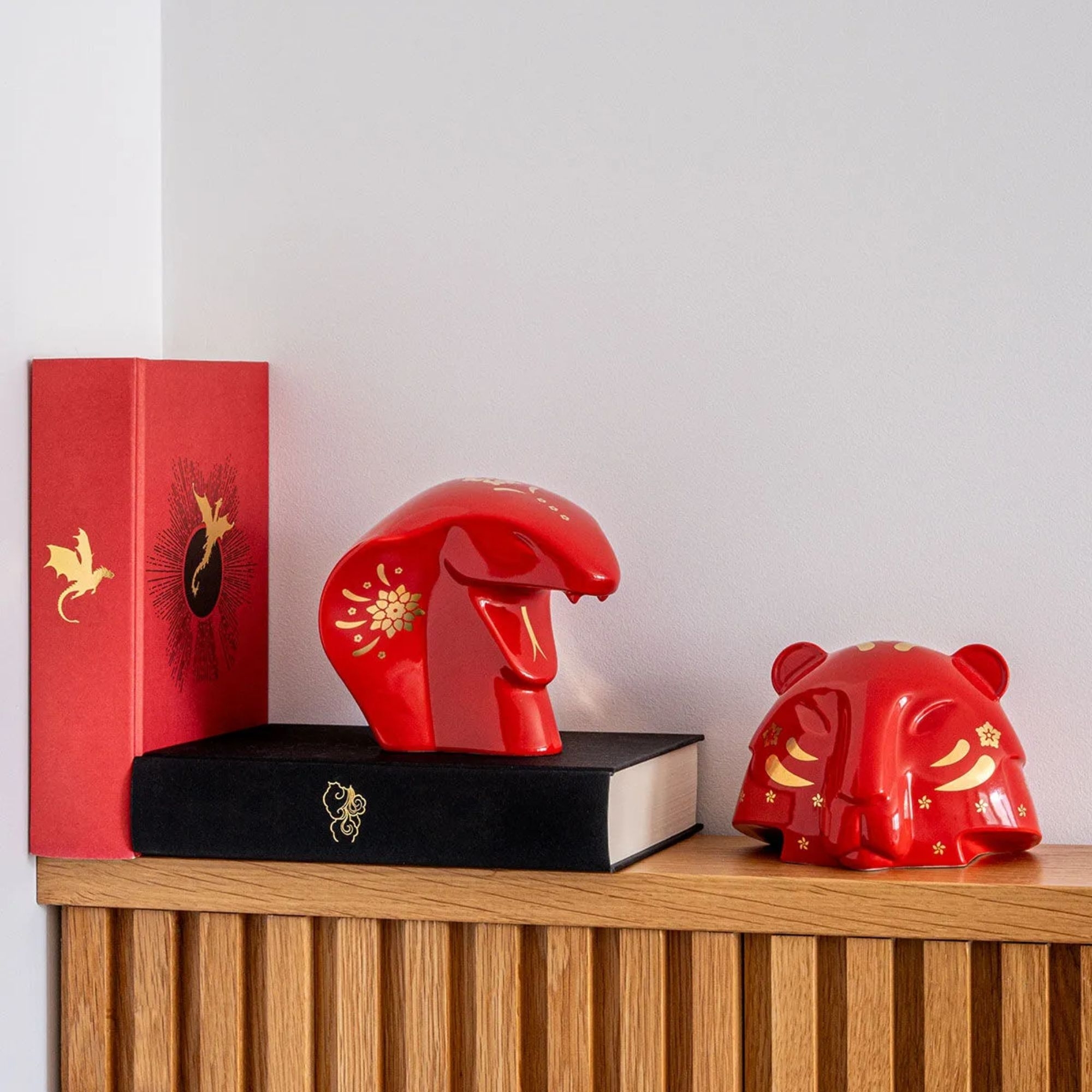 La scultura Il Serpente Rosso-Oro è un incantevole elemento di arredamento realizzato da Lladró interamente in porcellana. Questa magnifica scultura raffigura un serpente, che nella cultura cinese appartiene all'oroscopo ed è simbolo di saggezza, fascino e intuizione, ma da un punto di vista spirituale simboleggia rinascita e trasformazione. Abbracciando un design innovativo e raffinato, il soggetto si distingue per una decorazione incisiva su fondo rosso, arricchita da eleganti dettagli in oro brillante. Ciò mira ad avere una visione più astratta e filosofica dell'animale, e il suo design è perfetto per qualsiasi ambientazione: che sia posizionato sopra il comodino in camera da letto, in cameretta, oppure sul tavolino in salotto, Il Serpente è in grado di donare un tocco di mistero asiatico senza tempo. Realizzato da Raul Rubio per Lladró.