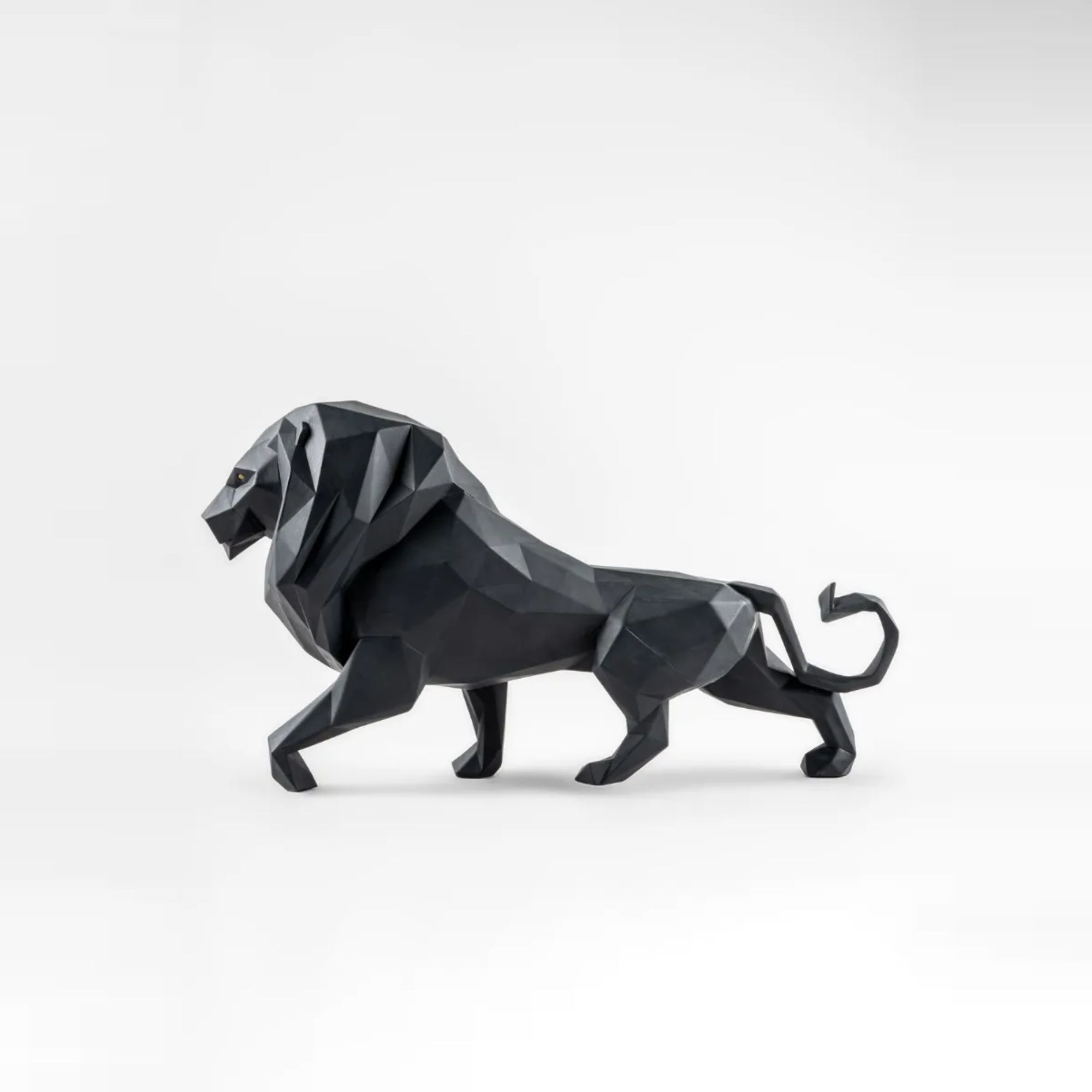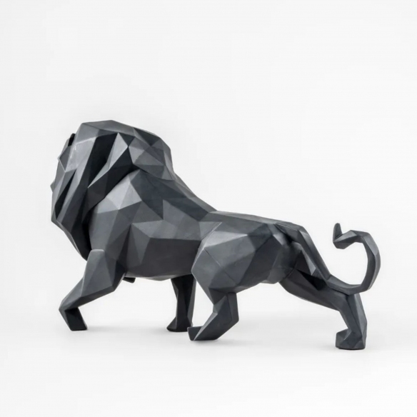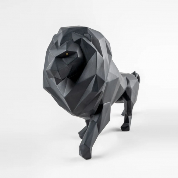 Scultura Leone Nero realizzata in porcellana. Questa impattante creazione rappresenta il re della giungla, simbolo di forza e nobiltà, reinterpretato attraverso l'arte giapponese dell'origami con un tocco moderno e innovativo. Realizzata in porcellana di alta qualità con finitura nera opaca, questa scultura esalta l'intensità e la bellezza del leone in una fusione perfetta di arte e design contemporaneo. Un vero capolavoro che combina tecniche artistiche tradizionali e moderne, il Leone Nero è ideale per chi ama decorazioni uniche e significative.