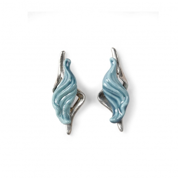 Orecchini corti Aquarium realizzati in porcellana. Ispirati alla maestosità dell'oceano, gli orecchini Aquarium catturano l'essenza delle onde danzanti in porcellana raffigurante tonalità acquatiche. L'argento sterling accoglie l'azzurro sereno del mare, creando un punto luce che incanta. Un accessorio pensato per chi sogna l'abbraccio salino del mare e desidera portare con sé un tocco della sua infinita bellezza.