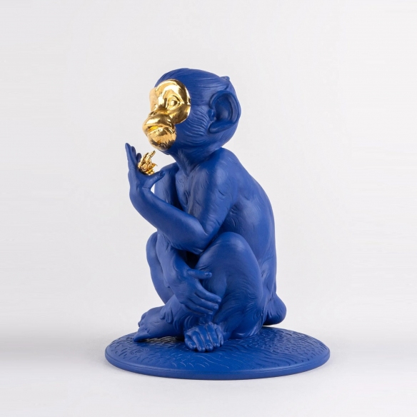 Lladrò Scultura in porcellana Piccola Scimmia Azzurro-Oro