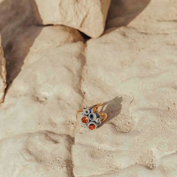 Anello Coral Reef realizzato in porcellana e argento sterling placcato oro. Questo gioiello è ispirato dall'incomparabile bellezza e dai colori vivaci dei coralli, riflettendo la straordinaria varietà e la vitalità dell'ecosistema marino. Indossare l'anello Coral Reef significa portare con sé un pezzetto di natura incontaminata e la magia di un mondo sottomarino, trasformando un semplice accessorio in un'opera d'arte che attira l'attenzione e suscita ammirazione. Ideale per gli amanti della natura e per chi apprezza la raffinatezza nei dettagli, questo anello non è solo un gioiello, ma un tributo alle meraviglie del mondo marino.