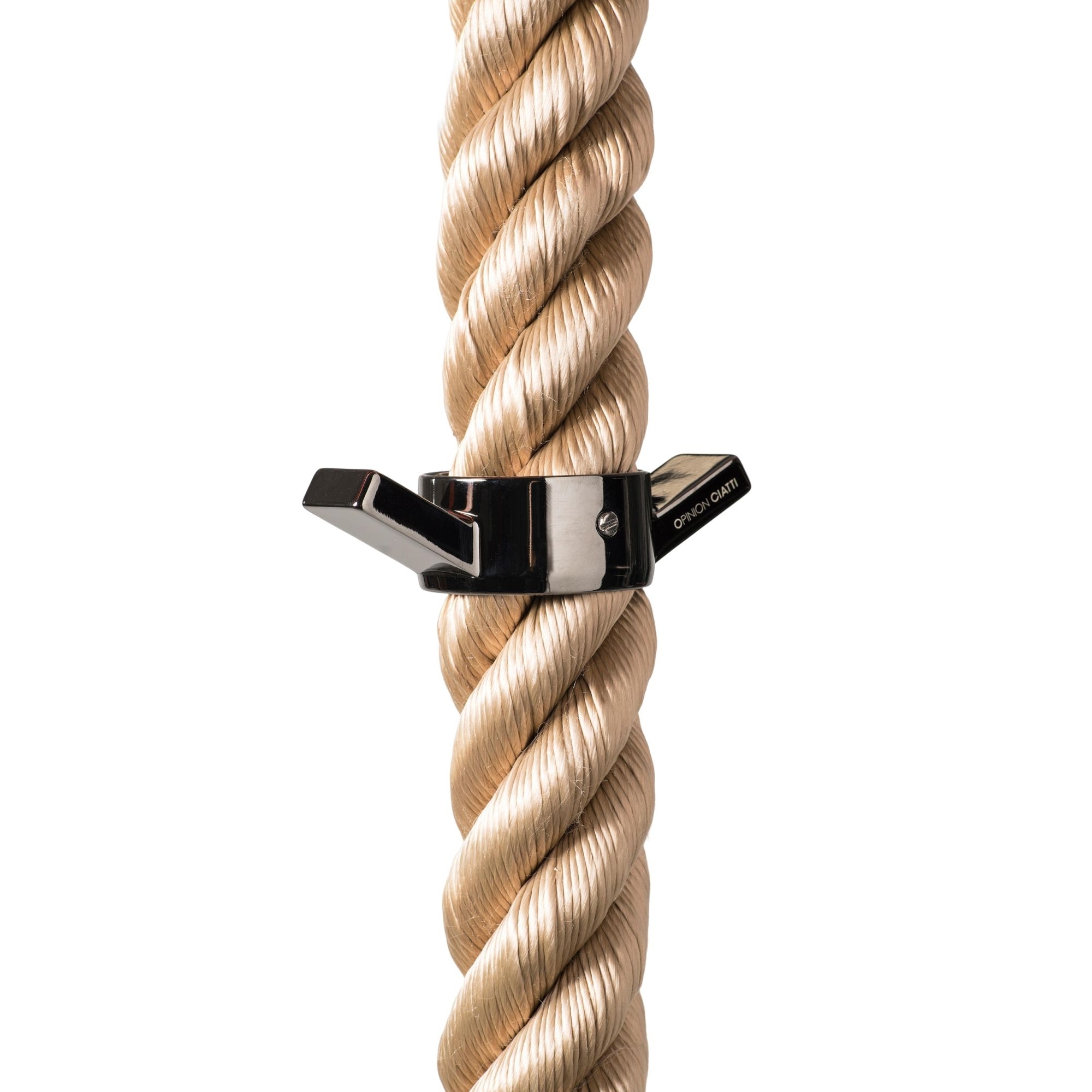 Appendiabiti da soffitto La Cima3, realizzato in corda nautica intrecciata, appendiabiti e attacco a soffitto in metallo. Personalizzabile in base ai propri gusti, La Cima3 è un complemento d'arredo estremamente particolare, ideale per gli amanti del ready-made design. Una classica corda nautica viene rielaborata, diventando un oggetto carico di stile e di funzionalità. Adattabile a svariati ambienti come casa, ufficio, bar o hotel, La Cima3 è il vero protagonista di qualsiasi arredamento. Disegnata da Lapo Ciatti per Opinion Ciatti.