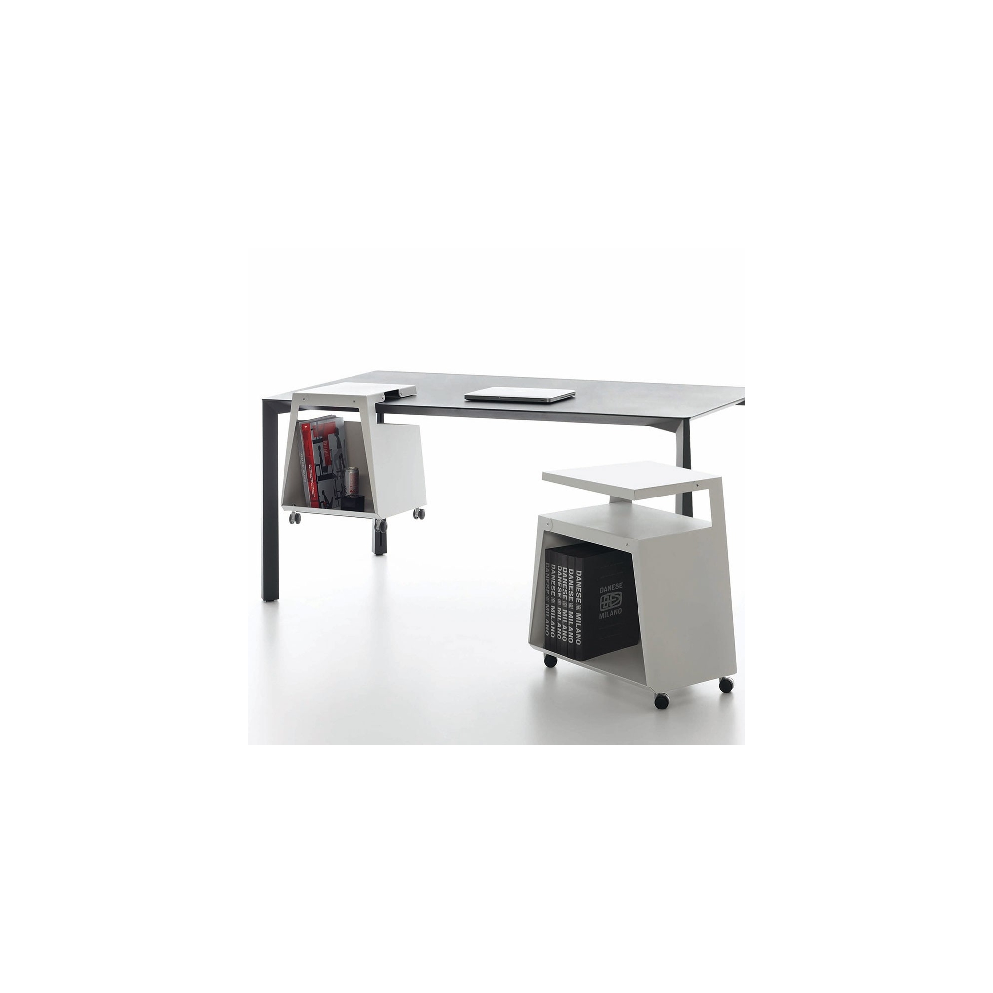 Carrello Smith realizzato in lamiera verniciata a polvere. Disponibile in 3 eleganti e suggestive finiture di colore, Smith è un carrello molto versatile: può fungere da contenitore per l'ufficio, da piano d'appoggio, da libreria e addirittura da seduta. Le ruote permettono un facile spostamento di Smith, mentre l'unità può essere sospesa e appesa ad una scrivania o ruotata attorno all'area di lavoro. Disegnato Johnathan Olivares nel 2007 per Danese Milano.