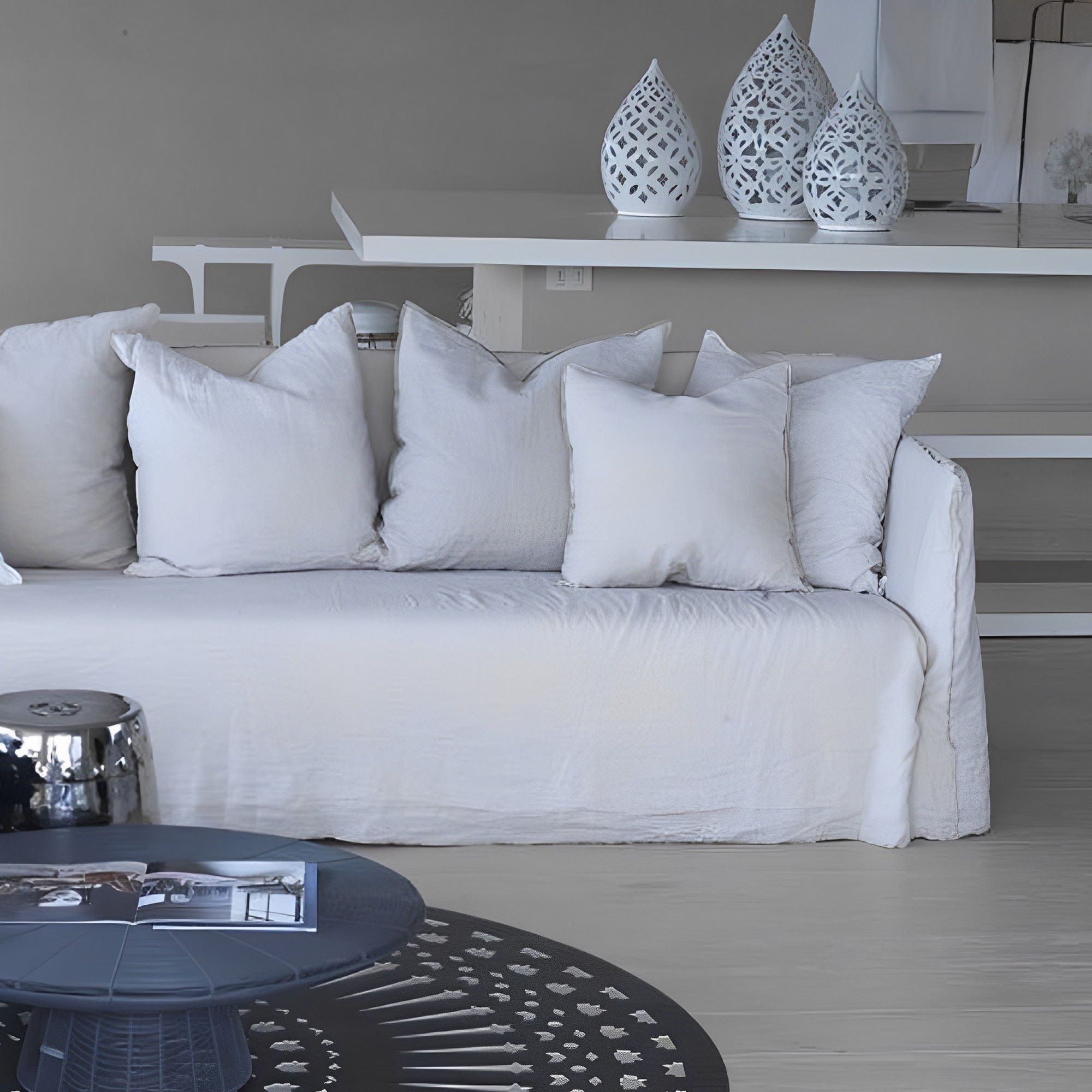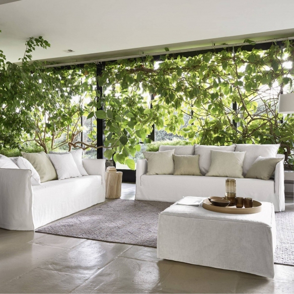 Divano 2 posti Ghost 10 realizzato con imbottitura in poliuretano espanso, rivestimento in lino bianco e cuscini inclusi in misto piuma. Perfetto per ogni casa contemporanea, il divano Ghost 10 dispone di un design minimalista ma raffinato. La seduta risulta molto confortevole e il rivestimento in lino bianco gli conferisce un look prestigioso. Pezzo d'arredamento di grande lusso, Ghost 10 è pronto a regalare qualità e stile al tuo arredamento. Disegnato da Paola Navone per Gervasoni.