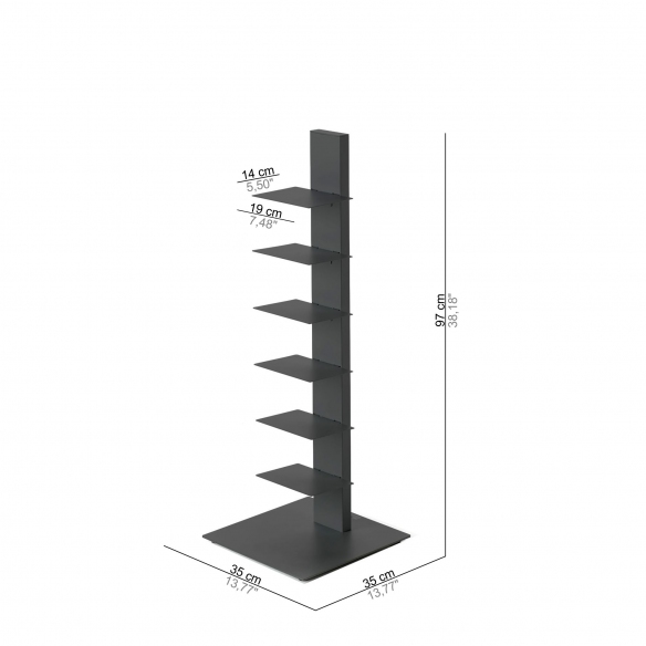 La libreria verticale Sapiens disegnata da Bruno Rainaldi è un'icona del marchio BBB Italia. Questa libreria dal design essenziale ma elegante è realizzata in acciaio verniciato a polveri epossidiche ed è formata da una robusta base 35x35 cm, un montante a sezione rettangolare dall'altezza 97 cm e 6 ripiani 19x14 cm. Sapiens è una libreria molto particolare perché a crearla sei tu! Posizionando i tuoi libri preferiti sulle mensole farai sparire la struttura stessa della libreria, formando così una splendida colonna di libri personalizzata! La libreria Sapiens è facilmente posizionabile in qualsiasi ambiente grazie alle dimensioni particolarmente ridotte: sistemala in soggiorno, in camera da letto o in ufficio Sapiens occuperà pochissimo spazio! E' molto leggera ed estremamente facile da montare: il pratico sistema ad incastro delle mensole ti permetterà di comporre la tua Sapiens in pochissimi minuti! In questa libreria si vede la mano del Bruno Rainaldi, vincitore del premio "Compasso d'oro" nel 2004 e designer di fama internazionale. Che aspetti? Scegli il colore che più si addice al tuo stile e sistema i tuoi libri o riviste in modo alternativo con la libreria Sapiens!