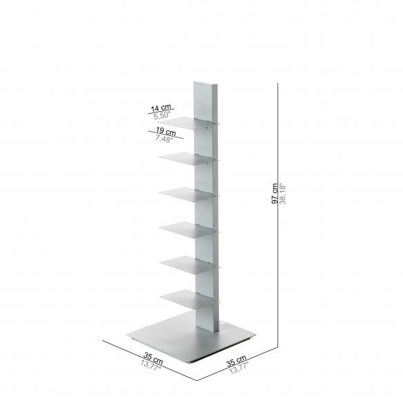 La libreria verticale Sapiens disegnata da Bruno Rainaldi è un'icona del marchio BBB Italia. Questa libreria dal design essenziale ma elegante è realizzata in acciaio verniciato a polveri epossidiche ed è formata da una robusta base 35x35 cm, un montante a sezione rettangolare dall'altezza 97 cm e 6 ripiani 19x14 cm. Sapiens è una libreria molto particolare perché a crearla sei tu! Posizionando i tuoi libri preferiti sulle mensole farai sparire la struttura stessa della libreria, formando così una splendida colonna di libri personalizzata! La libreria Sapiens è facilmente posizionabile in qualsiasi ambiente grazie alle dimensioni particolarmente ridotte: sistemala in soggiorno, in camera da letto o in ufficio Sapiens occuperà pochissimo spazio! E' molto leggera ed estremamente facile da montare: il pratico sistema ad incastro delle mensole ti permetterà di comporre la tua Sapiens in pochissimi minuti! In questa libreria si vede la mano del Bruno Rainaldi, vincitore del premio "Compasso d'oro" nel 2004 e designer di fama internazionale. Che aspetti? Scegli il colore che più si addice al tuo stile e sistema i tuoi libri o riviste in modo alternativo con la libreria Sapiens!