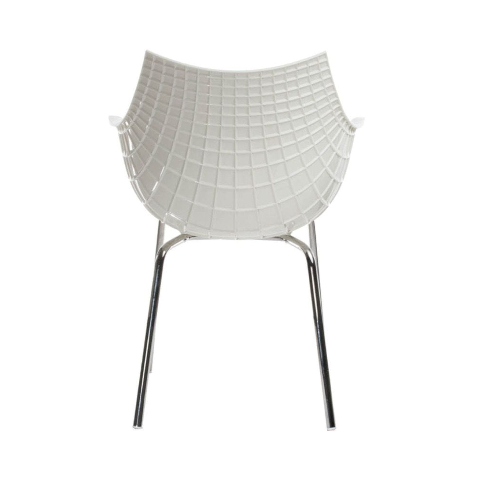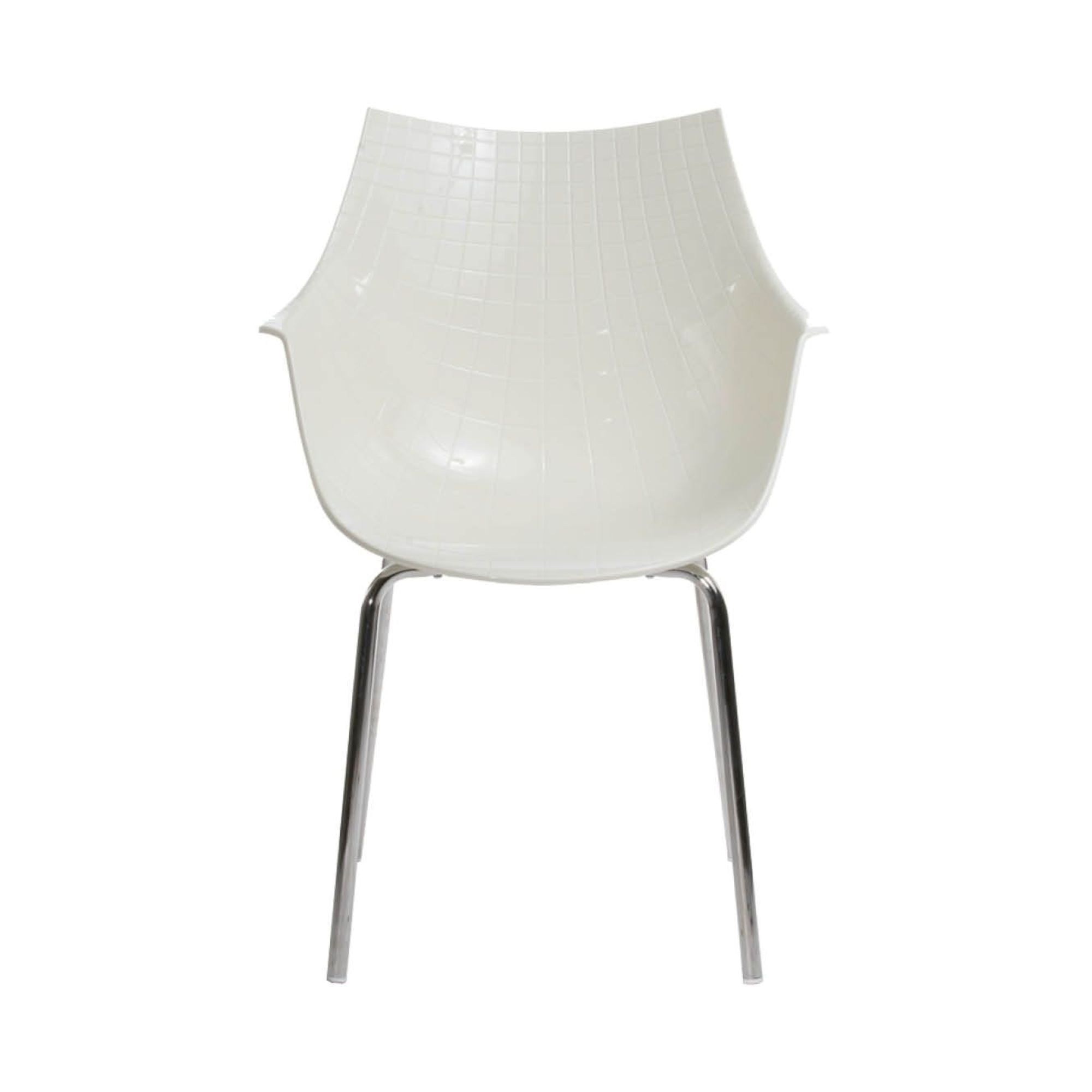 Sedia Meridiana realizzata con seduta in policarbonato e struttura in acciaio verniciato o cromato. Disponibile in 4 eleganti finiture di colore, Meridiana è una sedia molto elegante e versatile ed è adattabile a qualsiasi ambiente domestico, dalla sala da pranzo all'ufficio. Prende ispirazione dalle linee del diamante, caratteristica che gli conferisce estrema preziosità. La sedia perfetta per gli amanti della suggestività nei complementi d'arredo. Disegnata da Christophe Pillet per Driade.