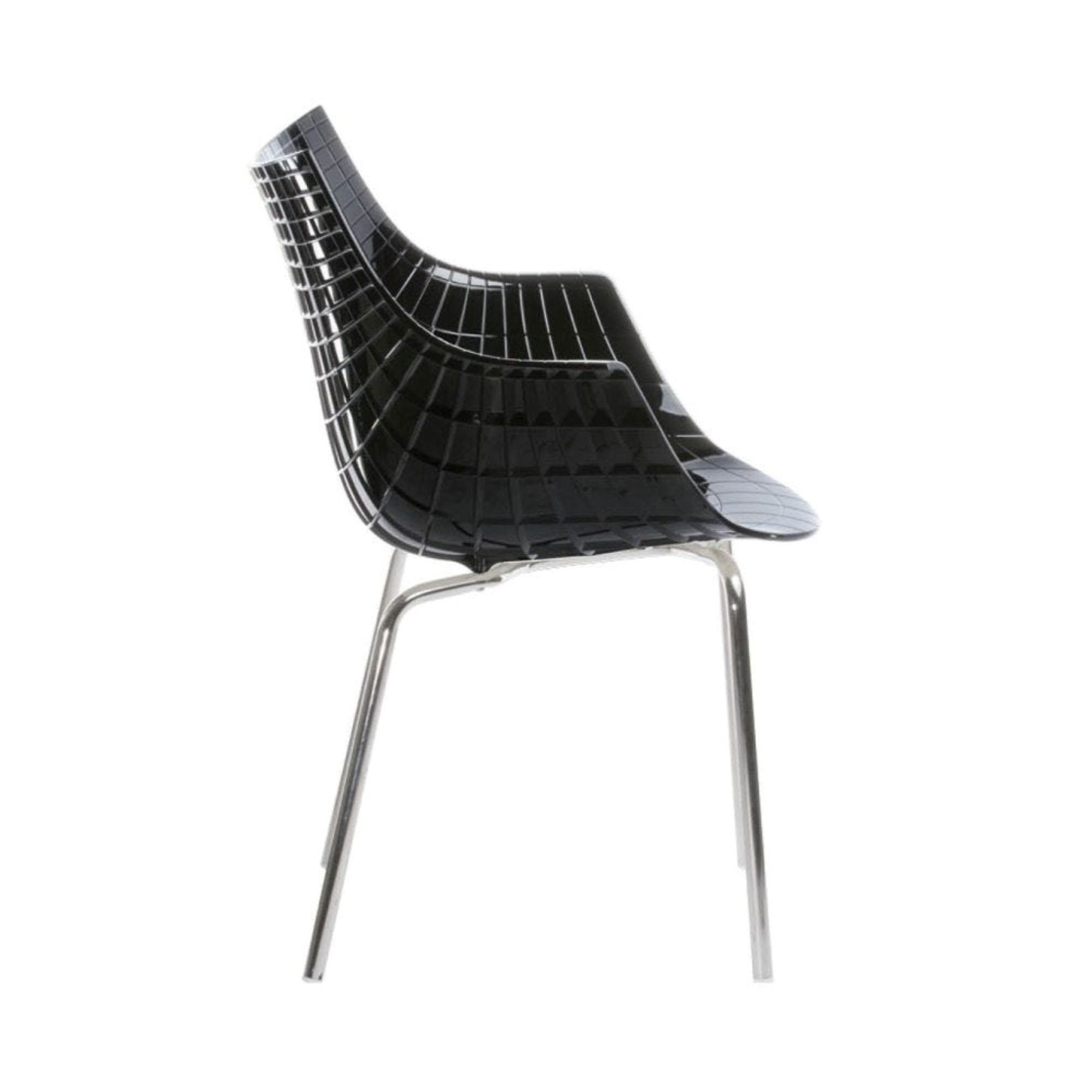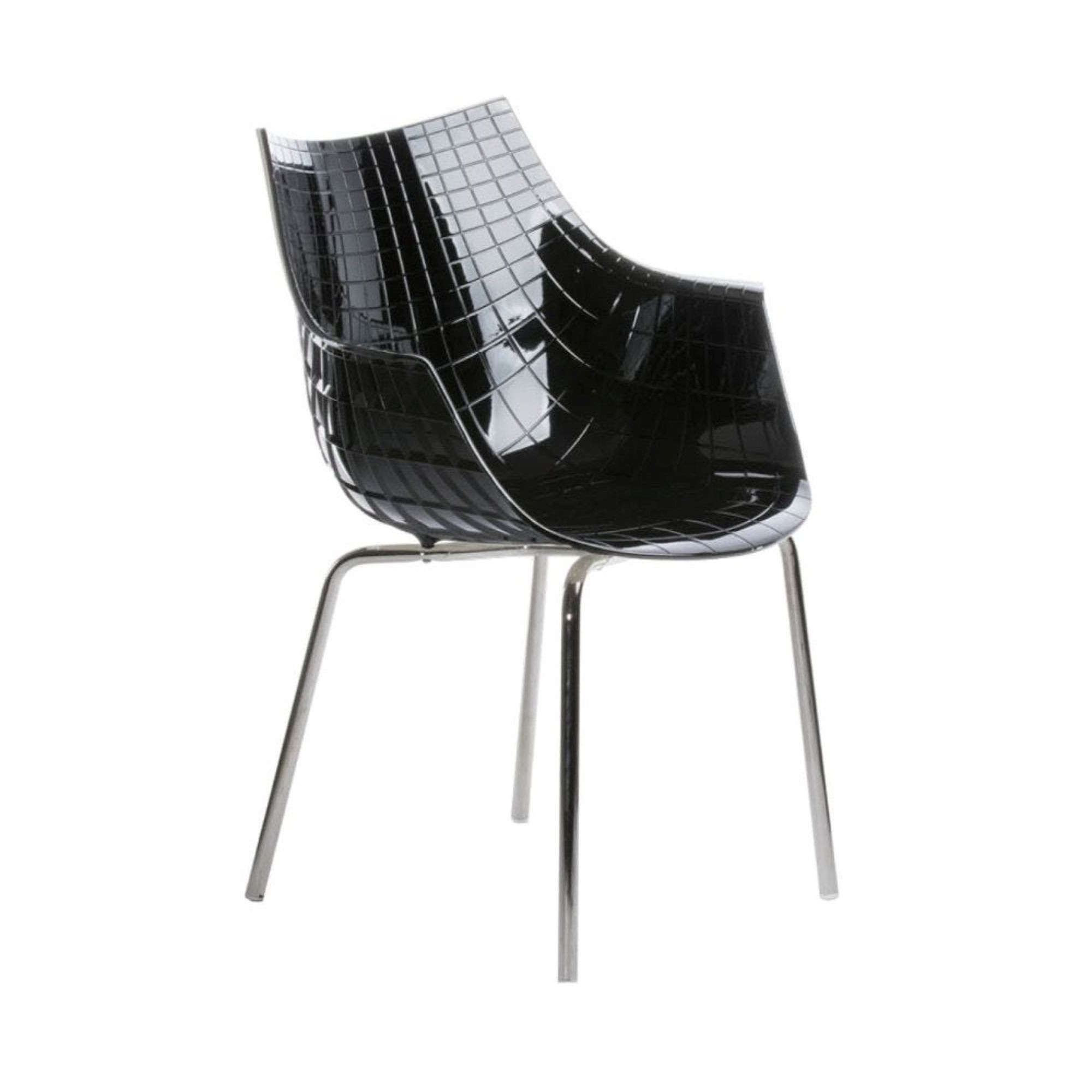 Sedia Meridiana realizzata con seduta in policarbonato e struttura in acciaio verniciato o cromato. Disponibile in 4 eleganti finiture di colore, Meridiana è una sedia molto elegante e versatile ed è adattabile a qualsiasi ambiente domestico, dalla sala da pranzo all'ufficio. Prende ispirazione dalle linee del diamante, caratteristica che gli conferisce estrema preziosità. La sedia perfetta per gli amanti della suggestività nei complementi d'arredo. Disegnata da Christophe Pillet per Driade.