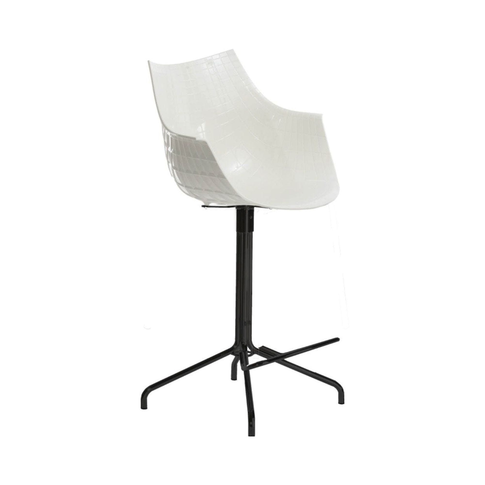 Sgabello girevole basso Meridiana, realizzato con seduta in policarbonato e struttura in acciaio. Disponibile in 4 eleganti finiture di colore per la seduta e in 2 finiture per la struttura, Meridiana è uno sgabello molto elegante e versatile, ed è adattabile a qualsiasi ambiente domestico, dalla sala da pranzo all'ufficio. Il sedile prende ispirazione dalle linee del diamante, caratteristica che gli conferisce estrema preziosità. Lo sgabello perfetto per gli amanti della suggestività applicata nei complementi d'arredo. Disegnato da Christophe Pillet per Driade.