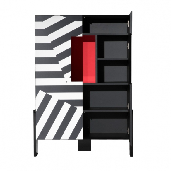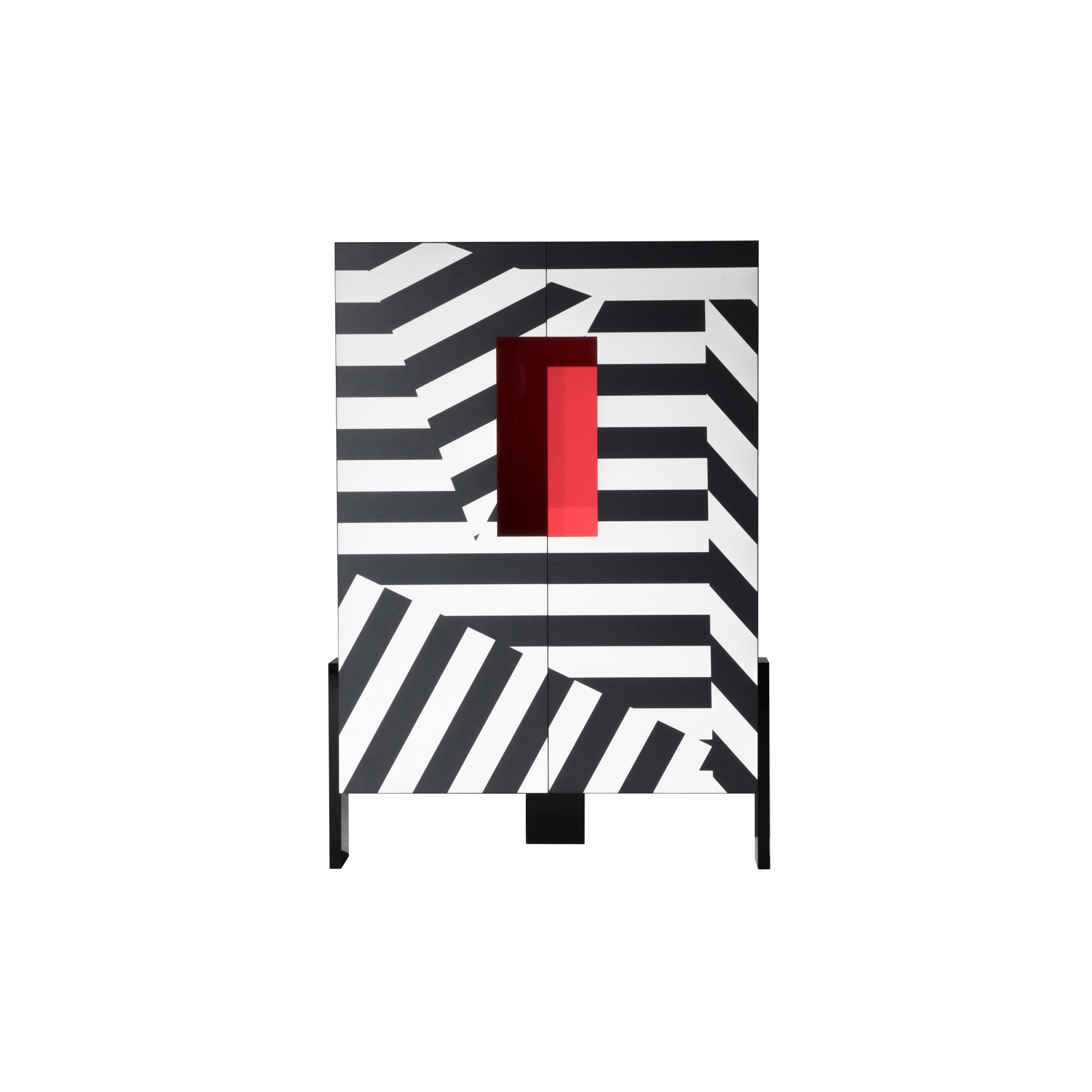 Ziqqurat è una famiglia di mobili contenitori componibili realizzati in bi-laminato. Caratterizzati da una grafica con decoro floreale, a righe o geometrico realizzata mediante stampa digitale. I moduli con ante hanno un ripiano interno spostabile, i cassettoni sono dotati di sistema di chiusura ammortizzata. Appoggi a terra realizzati in noce canaletto verniciato lucido per la versione con grafica floreale, in bi-laminato laccati in nero lucido per le altre versioni. Disponibile anche nella nuova versione verticale: uno scrigno in due altezze realizzato con anta battente e vano centrale a giorno o anta battente, cassettone e vano centrale a giorno. Per la realizzazione di Ziqqurat Driade si è voluta affidare a tutto l'estro e il talento di DriadeLab, un gruppo di giovani promesse del design