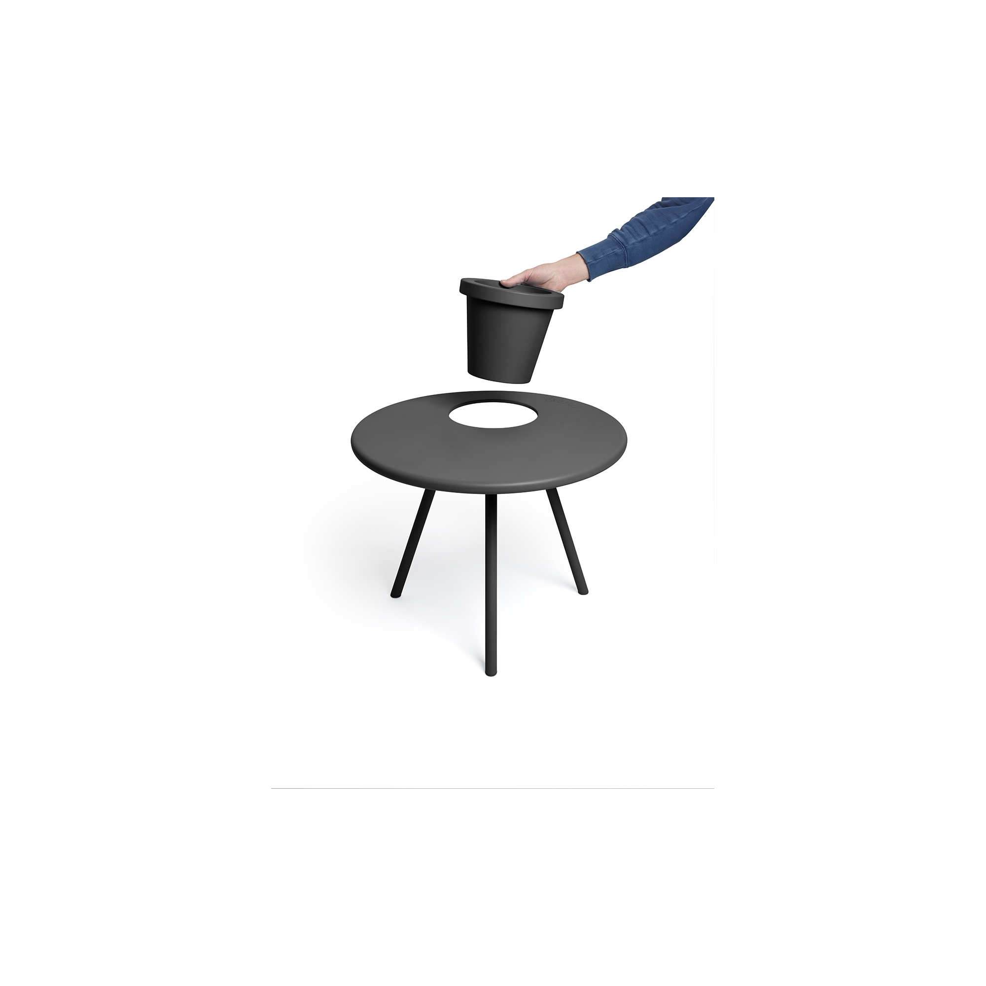 Tavolino tondo con vaso, da interno composto all'80% da materiale riciclato, disegnato da Kranen/Gille per Fatboy.