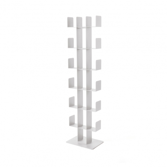 Libreria in acciaio, composta da 6 mensole distanziate 15 cm l'una dall'altra, alta 192 cm, può contenere circa 150 libri, disegnata da Bruno Rainaldi per BBB Italia