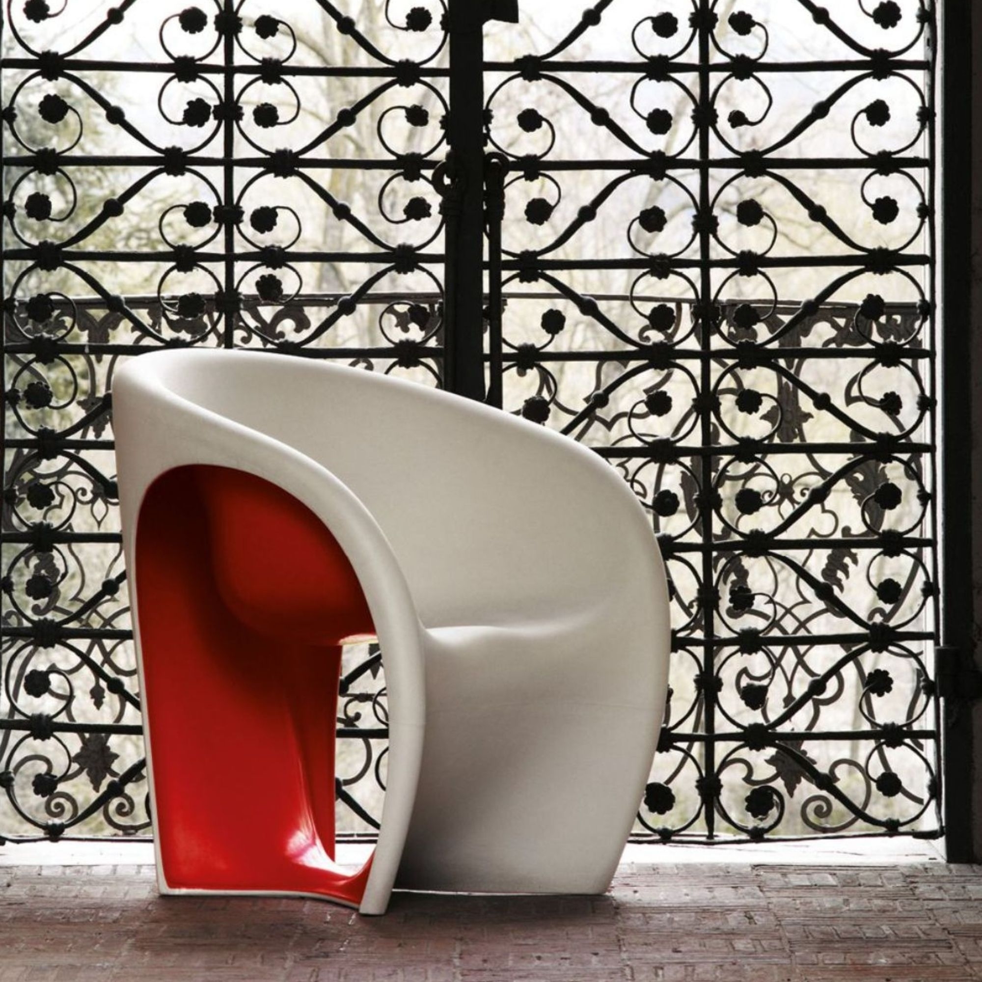 Poltrona monoblocco MT1 realizzata in polietilene. Disponibile in nero o in rosso, la poltrona MT1 è adatta sia per uso interno che esterno e può essere considerata un complemento d'arredo raro per la sua contemporaneità. Resistente e performante, MT1 è paragonabile ad una vera e propria opera d'arte, in cui diverse tecniche di lavorazione si fondono per creare un oggetto dalla grande preziosità. Disegnata da Ron Arad per Driade.