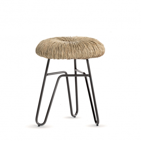 Sgabello Donut con seduta imbottita in paglia, disegnato da Alessandra Baldereschi per Mogg