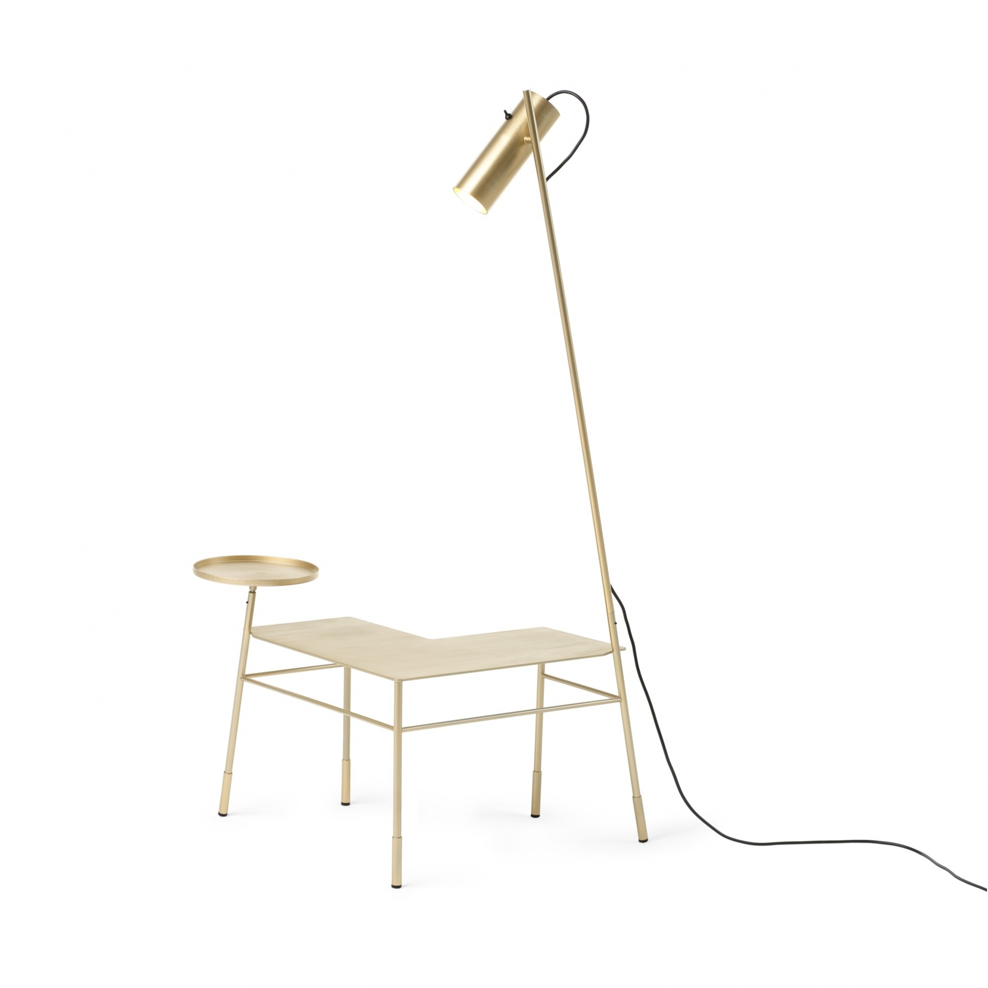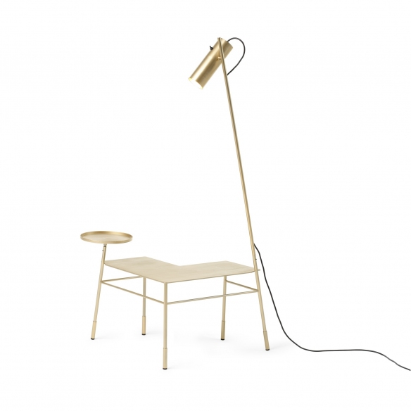 Tavolino angolare Dasè in metallo con lampada e vassoio disponibile in due varianti di colore, disegnato da Idelfonso Colombo per Mogg