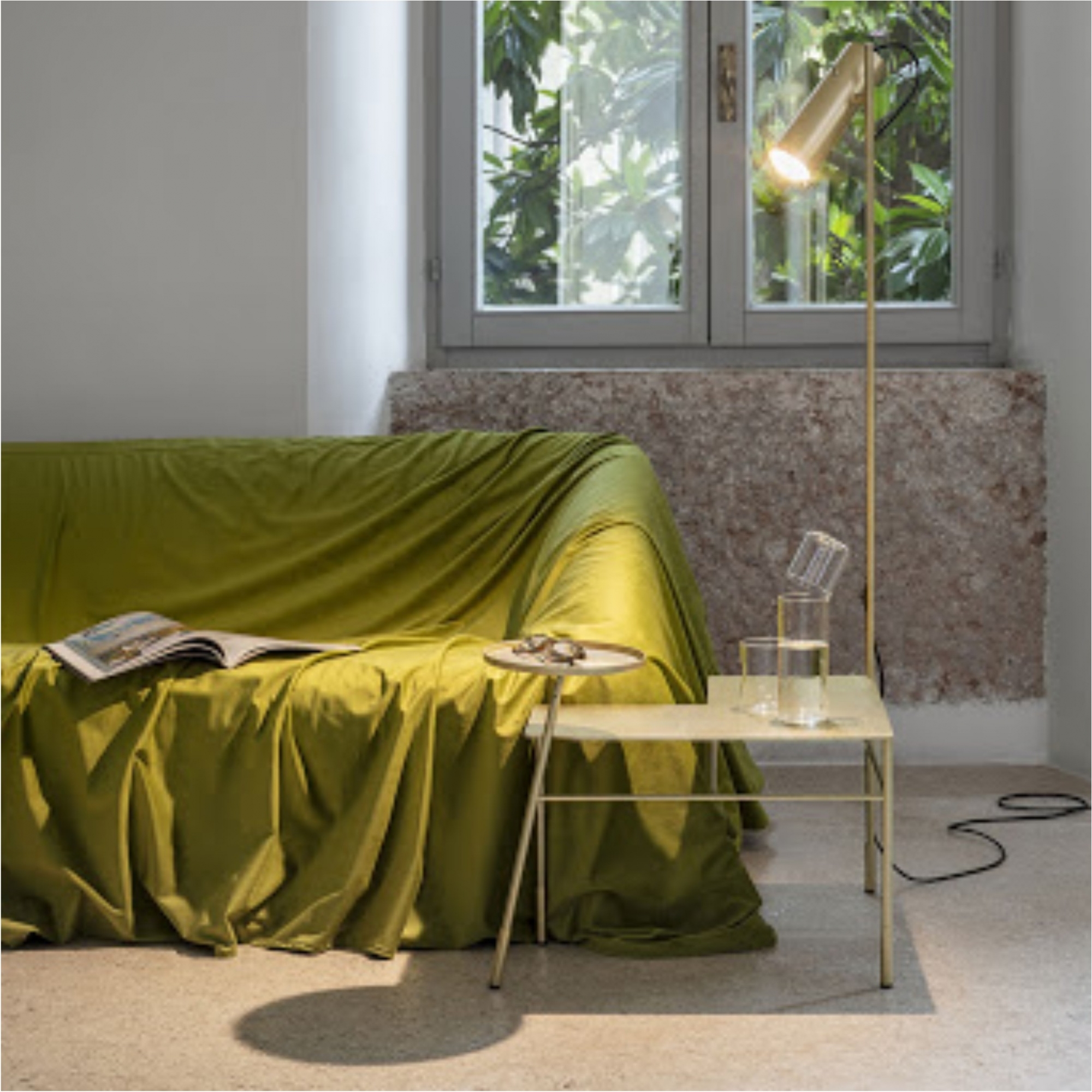 Tavolino angolare Dasè in metallo con lampada e vassoio disponibile in due varianti di colore. Dasè si presenta con un design multifunzionale, può essere posizionato adiacente a divani o poltrone. Può essere utilizzato come piano d'appoggio, come vassoio e come lampada. Un unico oggetto per tre funzioni diverse, disegnato da Idelfonso Colombo per Mogg