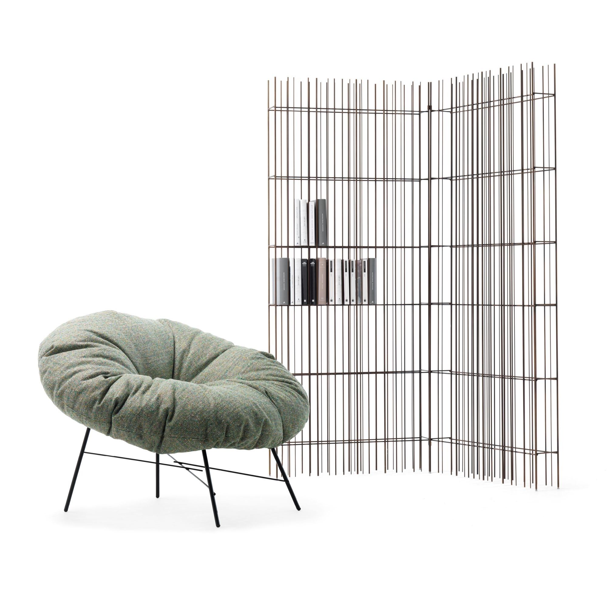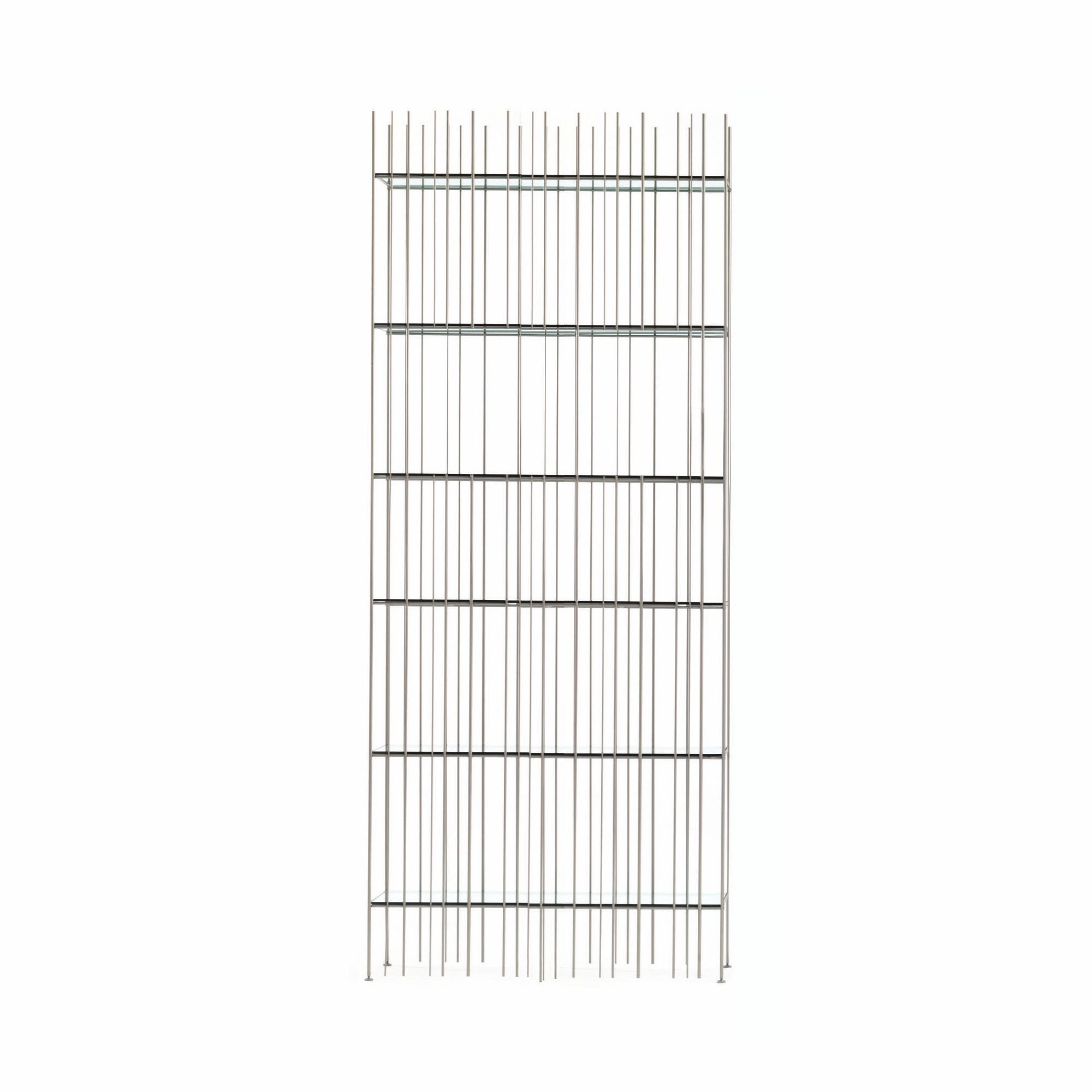 Libreria Metrica Wall A, realizzata con struttura in metallo e ripiani opzionali in cristallo. Disponibile nelle splendide finiture in brunito, oro e titanio per quanto riguarda la struttura e in verde o bronzo per quanto riguarda i ripiani, Metrica Wall è una libreria dal design semplice: il ritmo è scandito dalle bacchette di ferro fissate a diversi intervalli, su una struttura rigorosa, pronta ad essere riempita da libri e oggetti. Ideale per arredamenti dal gusto contemporaneo, Metrica Wall si appresta a diventare la protagonista dei tuoi ambienti living. Disegnata da Ctrlzak per Mogg.