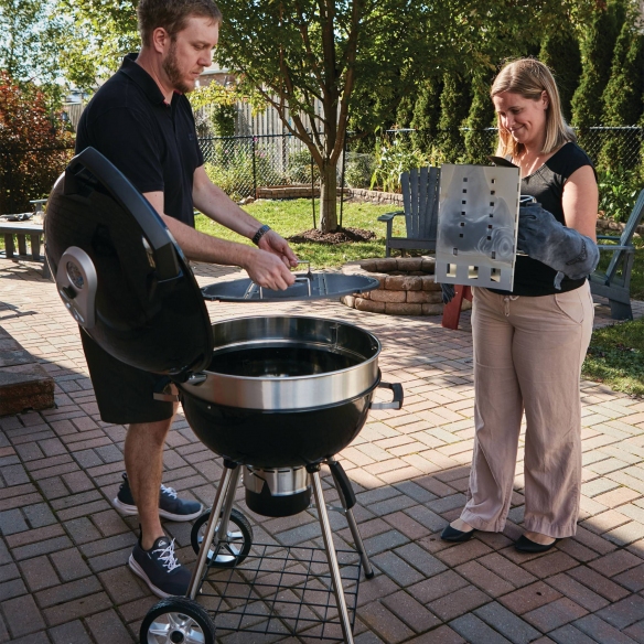 Il Barbecue a carbonella PRO22K-L3 si distingue per la sua robustezza e durata grazie ai materiali utilizzati da Napoleon, quali acciaio e ghisa porcellanata, che garantiscono resistenza alle corrosioni e agli agenti atmosferici come raggi UV e calore, ideale per l'uso esterno. La dimensione della griglia di cottura è stata realizzata per cucinare una vasta gamma di alimenti contemporaneamente, come tagli particolari di carne, pesce o verdure, e grazie alla sua superficie di cottura, che distribuisce il calore in maniera omogenea e uniforme, gli alimenti avranno un sapore buonissimo. Una delle caratteristiche fondamentali di questo barbecue è il suo sistema avanzato di controllo della temperatura, perché grazie ai regolatori di ventilazione posizionati strategicamente è possibile regolare con semplicità e precisione il flusso d'aria e la temperatura all'interno del barbecue, ottenendo una cottura ottima per ogni tipo di ricetta e alimento. In più, il barbecue a carbonella PRO22K-L3 è dotato di cestello per la cenere, facilitando così la pulizia, e ha anche delle rotelle robuste e maniglia, che agevolano gli spostamenti del barbecue a seconda delle necessità dell'utente. Il coperchio è dotato di una cerniera offeset, che consente l'accesso all'intera superficie di cottura tenendo le mani lontane dal calore. Il design minimalista, inoltre, fa sì che si integri in qualsiasi stile di arredamento, da un giardino rustico a un terrazzo moderno. Scegliere il barbecue a carbonella PRO22K-L3 significa optare per un prodotto che combina eccellenza funzionale, praticità ed estetica.