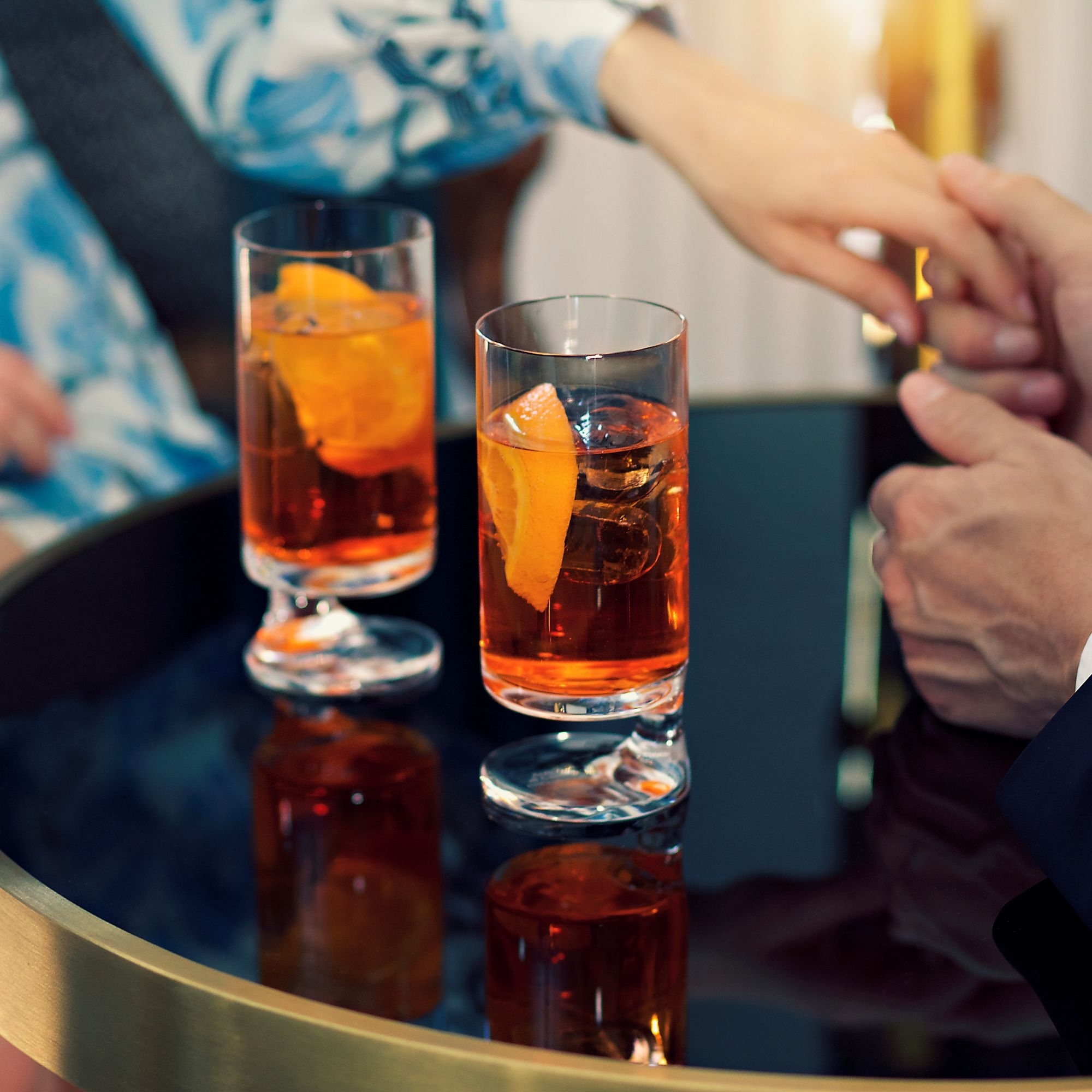 Il set 2 bicchieri bibita Smoke è stato realizzato da Arnolfo di Cambio in cristallo, ed è un esempio perfetto del connubio tra funzionalità, eleganza e stile. Questo delizioso set di due bicchieri bibita ha il fondo asimmetrico, studiato per garantire una presa sicura senza rinunciare al gusto del drink. Inoltre, grazie al suo design unico e inimitabile, Smoke si inserisce perfettamente a qualsiasi tipologia di contesto, ideale sia per serate tra colleghi che per feste tra amici e parenti. Il cristallo del bicchiere è una scelta audace e di classe che cattura la luce ambientale, creando riflessi ed effetti chiaroscurali che esaltano il contenuto e stimolano la vista. Il fondo spesso dei bicchieri per bibita Smoke non è solo un dettaglio estetico, ma contribuisce alla percezione olfattiva e gustativa del cocktail servito, invitando a un sorso lento e ponderato. Design di Joe Colombo per Arnolfo di Cambio.