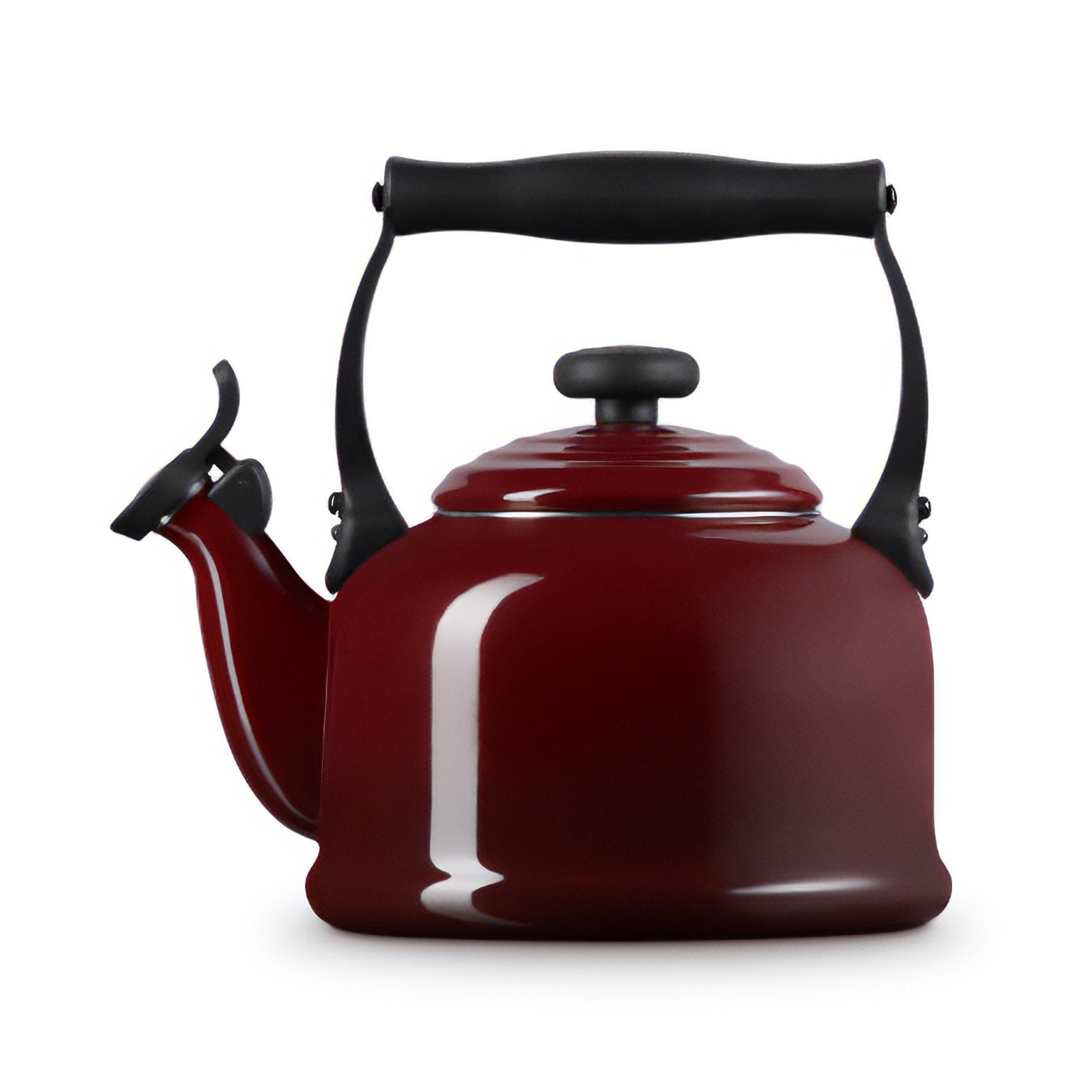 Bollitore Tradition realizzato in acciaio al carbonio smaltato sia all'interno che all'esterno. Disponibile in 10 splendide finiture di colore caratterizzate dall'inconfondibile sfumatura targata Le Creuset, Tradition è un bollitore dal design vintage, capace di alleviare con stile la tua cucina, anche contemporanea! Con una capacità di 2 litri, Tradition è adatto a tutte le fonti di calore, piani di cottura a induzione compresi! Molto resistente e duraturo, dispone di un'impugnatura pratica sicura, grazie al manico resistente al calore fino a °190! Tradition raggiunge il la temperatura di ebollizione molto velocemente e ti avviserà con un simpatico fischio quando l'acqua è pronta per l'utilizzo! Lasciati affascinare dallo stile inconfondibile di Tradition, il bollitore per tutti!