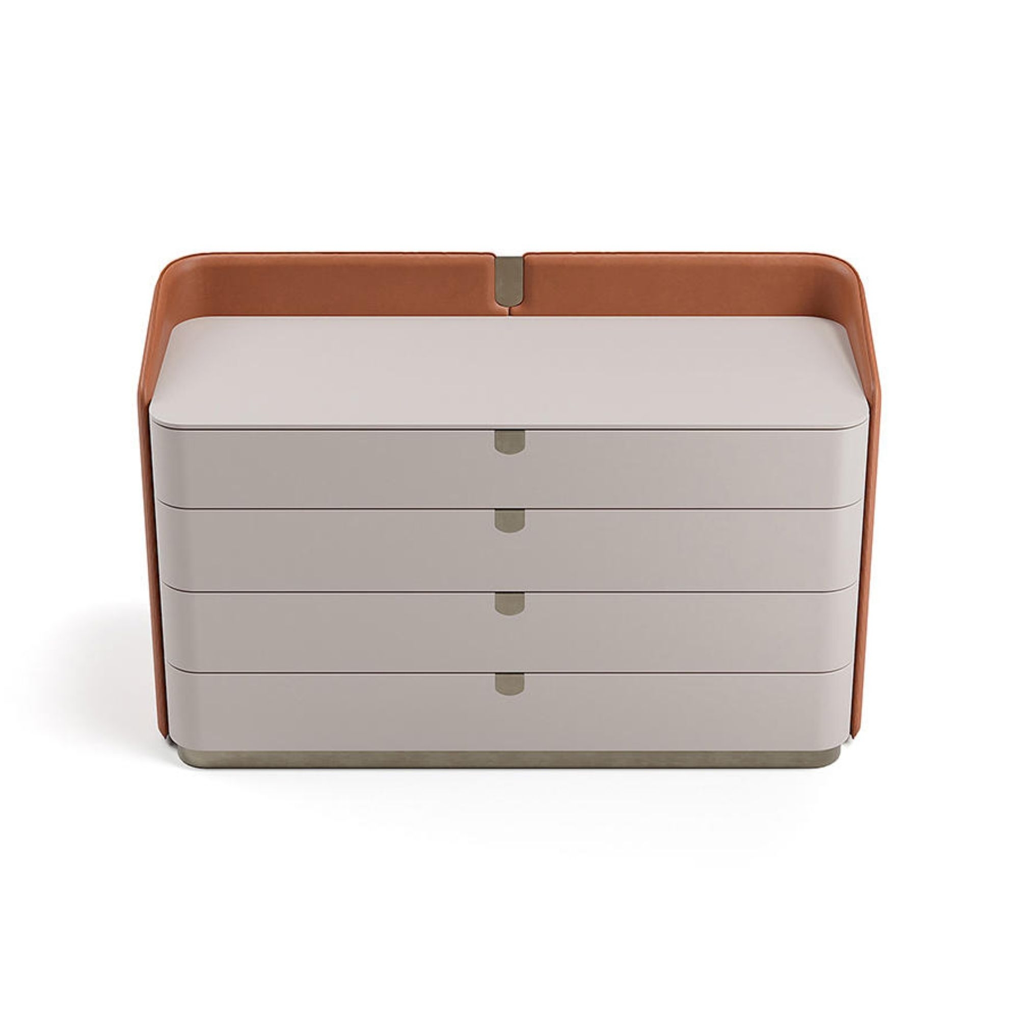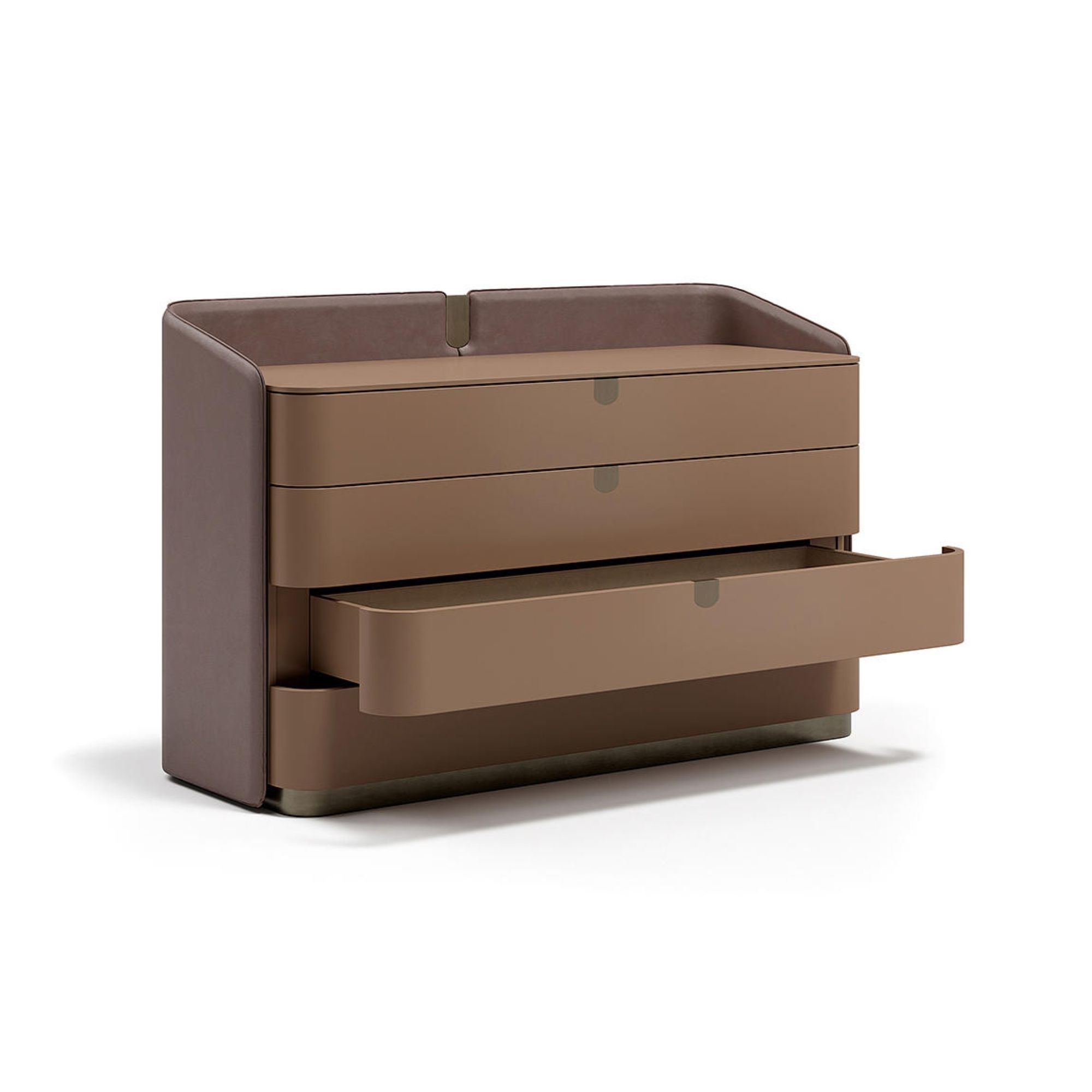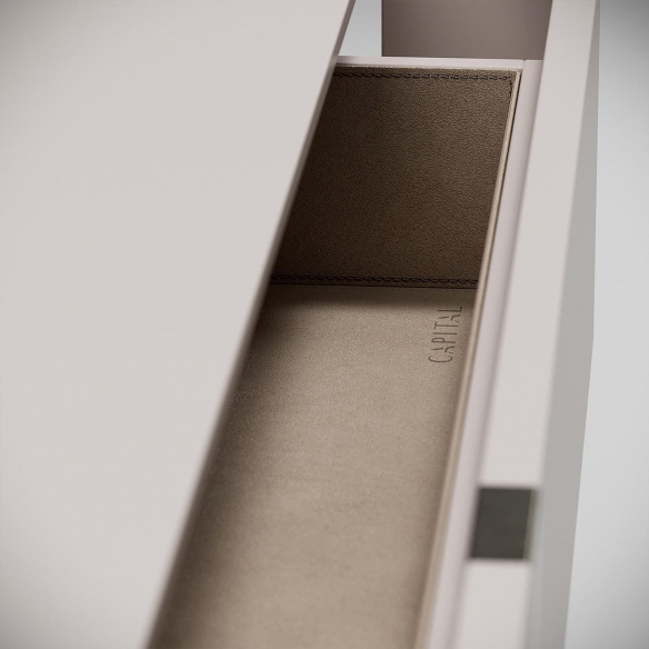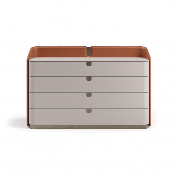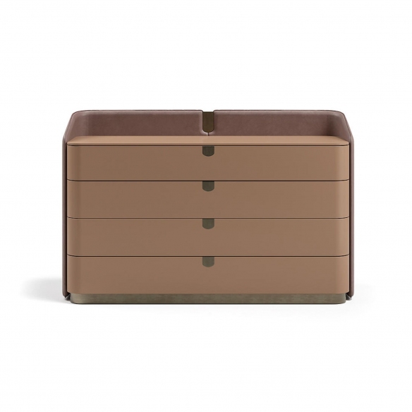 La cassettiera Suite è una deliziosa e iconica opera d'arte realizzata da Capital con struttura in essenza e rivestimento in pelle, materiali pregiati che garantiscono resistenza, eleganza e longevità. Questa cassettiera, disponibile in varie splendide finiture, si abbina armonisamente a qualsiasi ambientazione e tipologia di contesto: che sia collocata all'interno di una camera da letto, in un ampio corridoio oppure in un salotto dal design tradizionale, Suite cattura l'attenzione, donando classe e lusso a ogni spazio. La cassettiera Suite offre quattro ampi cassetti che scorrono fluidamente e silenziosamente, grazie a meccanismi di chiusura all'avanguardia. Questi scomparti sono ideali per tenere oggetti e vestiti organizzati e a portata di mano, con il vantaggio di un facile accesso ai propri beni più preziosi. La cassettiera Suite non è solo un semplice mobile per riporre oggetti di vario tipo, ma un vero e proprio prodotto di arredamento in grado di migliorare qualsiasi ambientazione. Disegnata da Boatto Martino Studio per Capital.