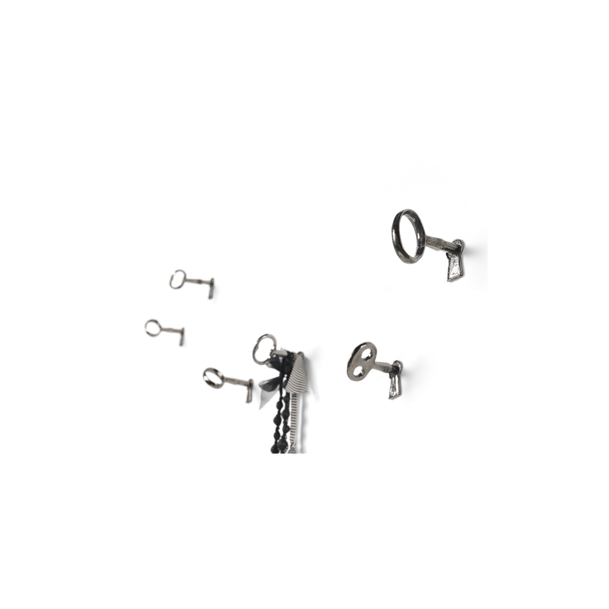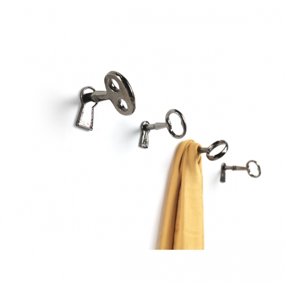 Set appendiabiti Memorie da 4 pz. realizzato in fusione ottone con finitura nero lucido. Le 4 chiavi Memorie hanno un design old-style rinnovato e sorprendente modo d'uso, possono essere fissate al muro liberamente a piacimento. Memorie è quello che cerchi se ti piace viaggiare nel tempo con i ricordi! Disegnato da Luca Somaini per Mogg.
