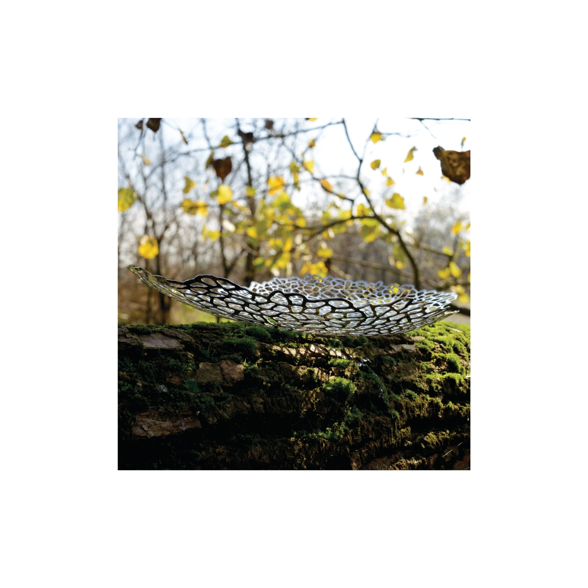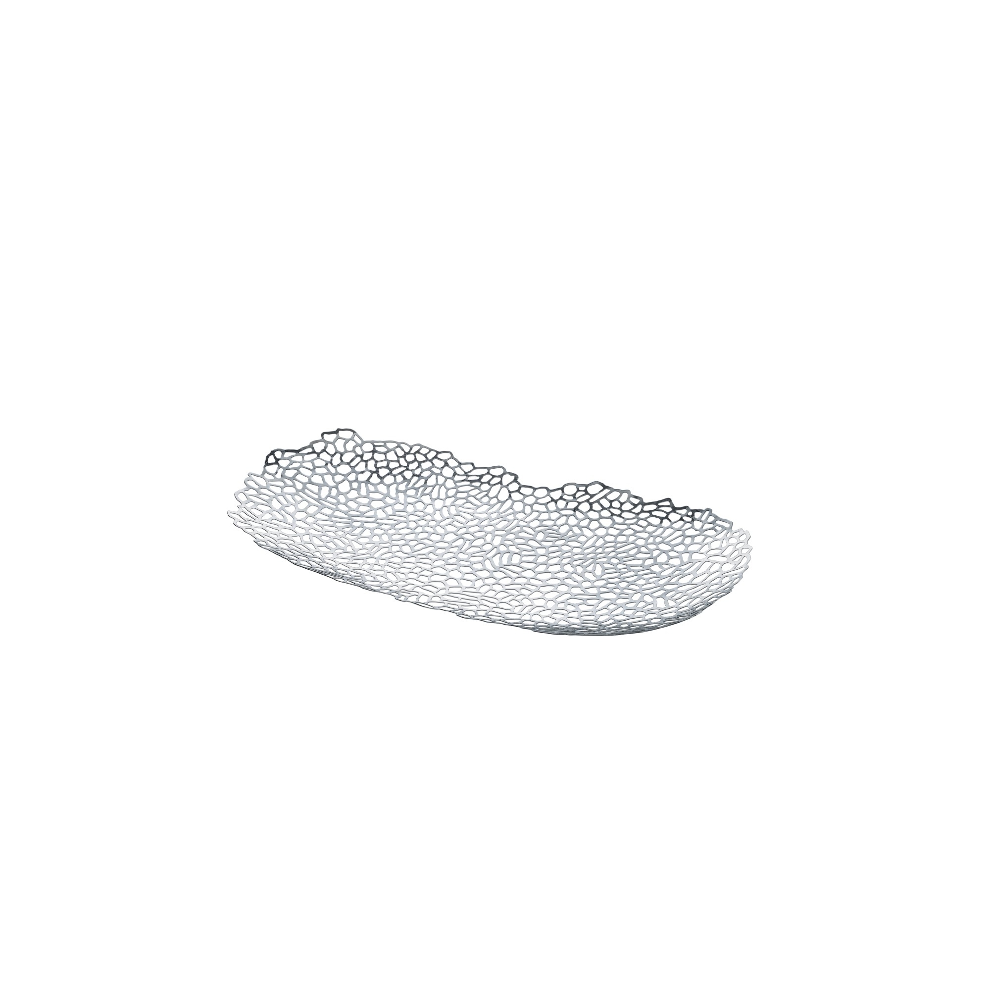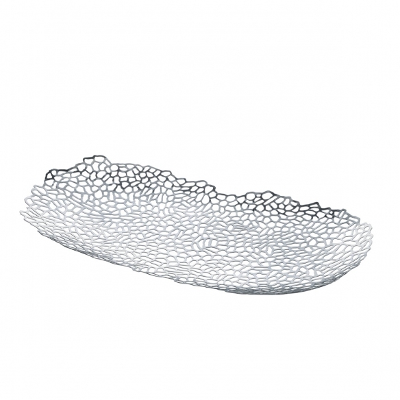 Centrotavola Opus realizzato in acciaio inossidabile 18/10. Elegante e sinuoso, il centrotavola Opus presenta un design fresco, il cui traforo richiama le fattezze di un merletto. E' proprio dai merletti che il designer ha tratto ispirazione per la realizzazione di Opus, centrotavola dalle dimensioni importanti la cui leggerezza è comunicata dall'elegane traforo. Disegnato da Guido Venturini per Alessi.