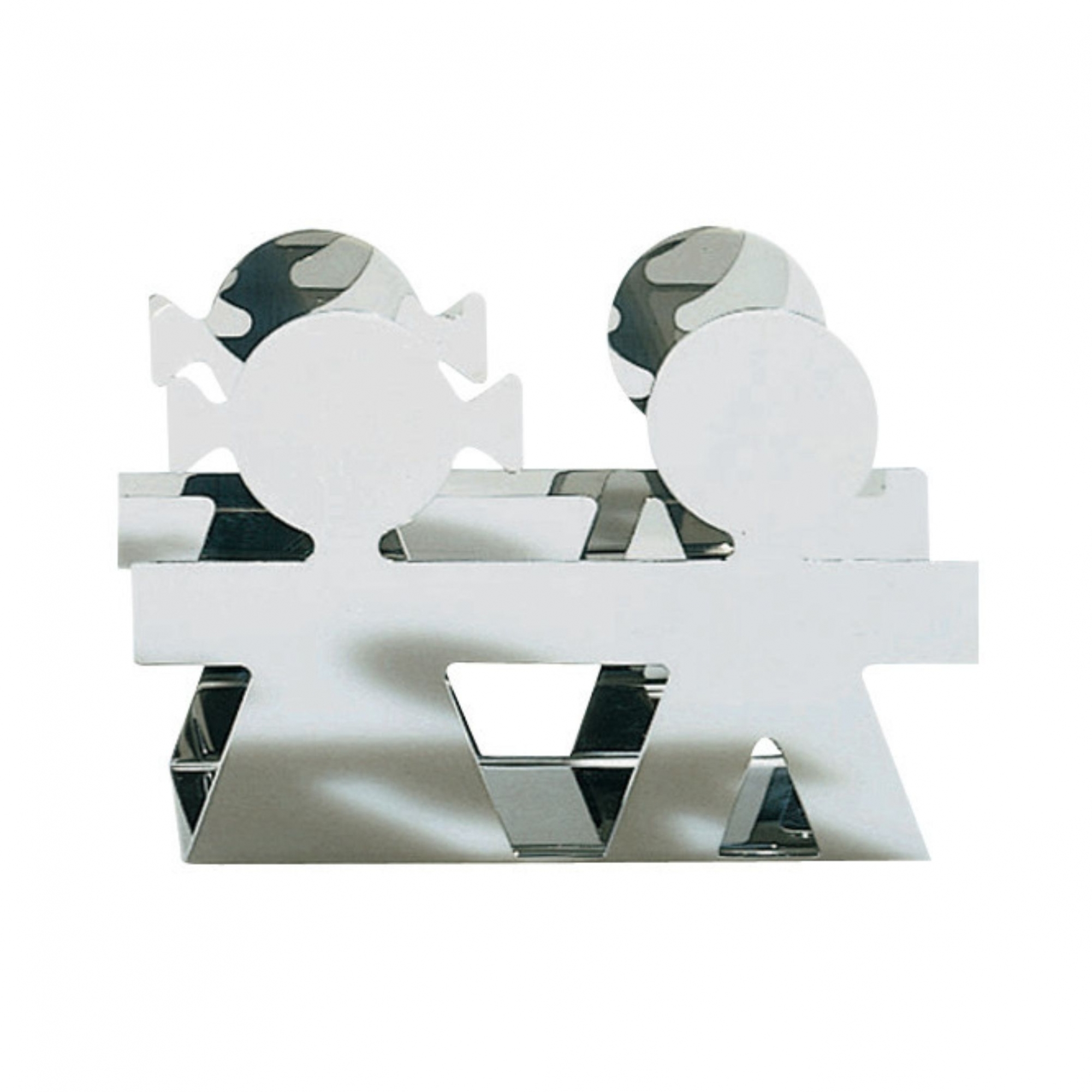 Portabuste Girotondo in acciaio inossidabile 18/10. Questo esclusivo Portabuste è molto più di un oggetto dove riporre le buste o altro: è una vera e propria scultura da asciare brillare nel tuo arredamento, un complemento d'arredo affascinante ed elegante. Il traforo a motivo "omini" sottolinea ancora di più l'eleganza di questo fantastico oggetto, vera e propria icona del brand Alessi. Il portabuste Girotondo ti conquisterà in un batter d'occhio! Disegnato da King-Kong per Alessi.