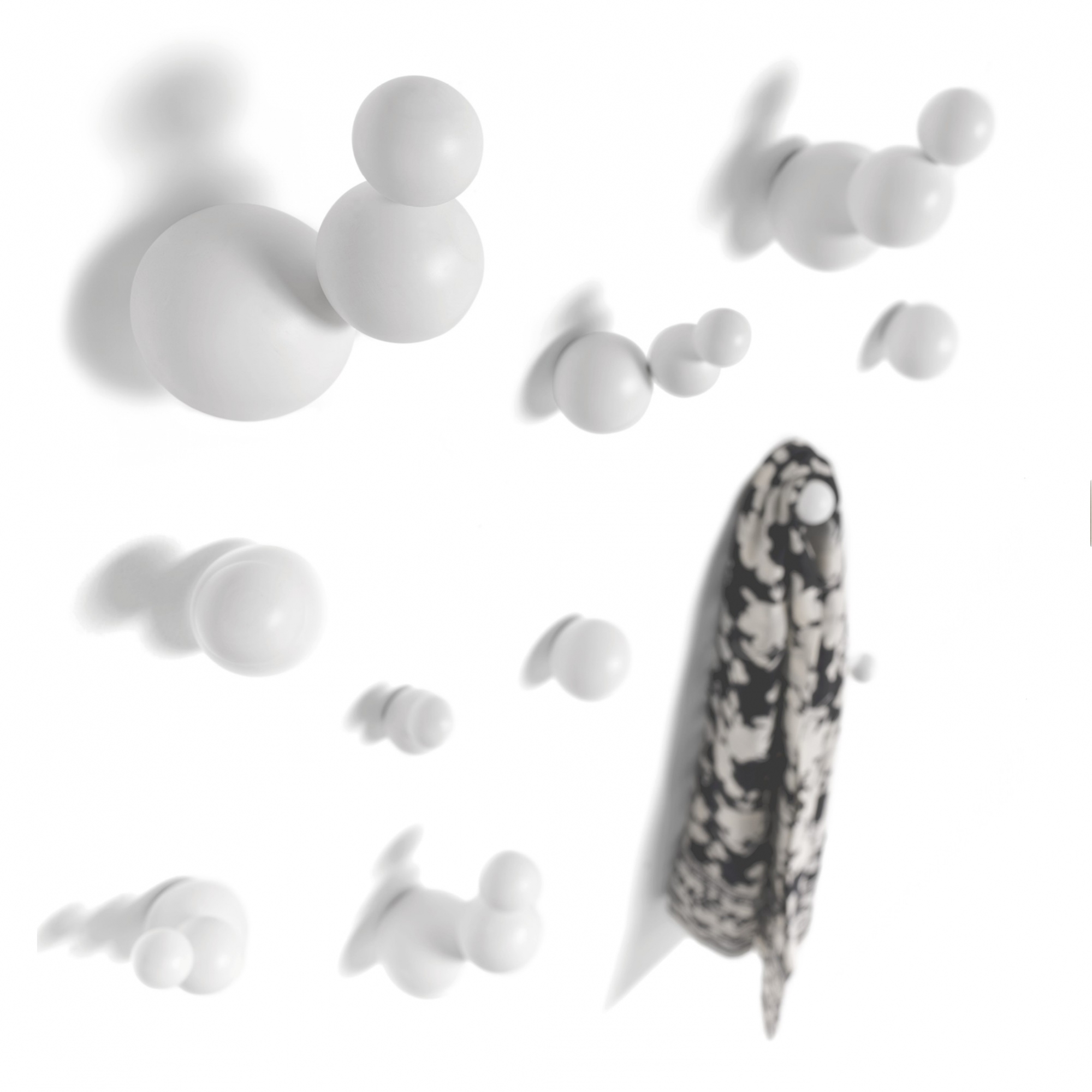 Kit di 5 appendiabiti a parete in legno di faggio tornito in 5 misure diverse, elemento funzionale ma al tempo stesso decorativo che si sposa perfettamente con l'intero spazio domestico, disegnato da Annebeth Philips per Mogg