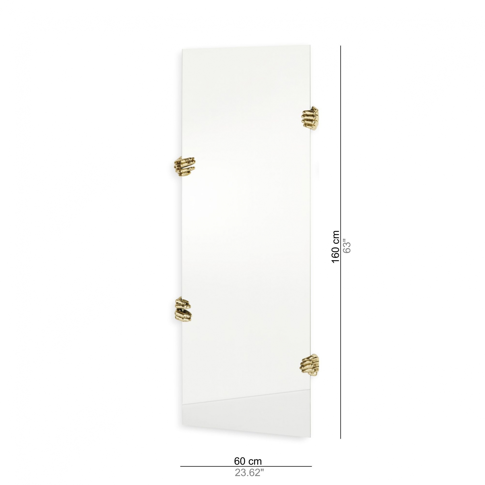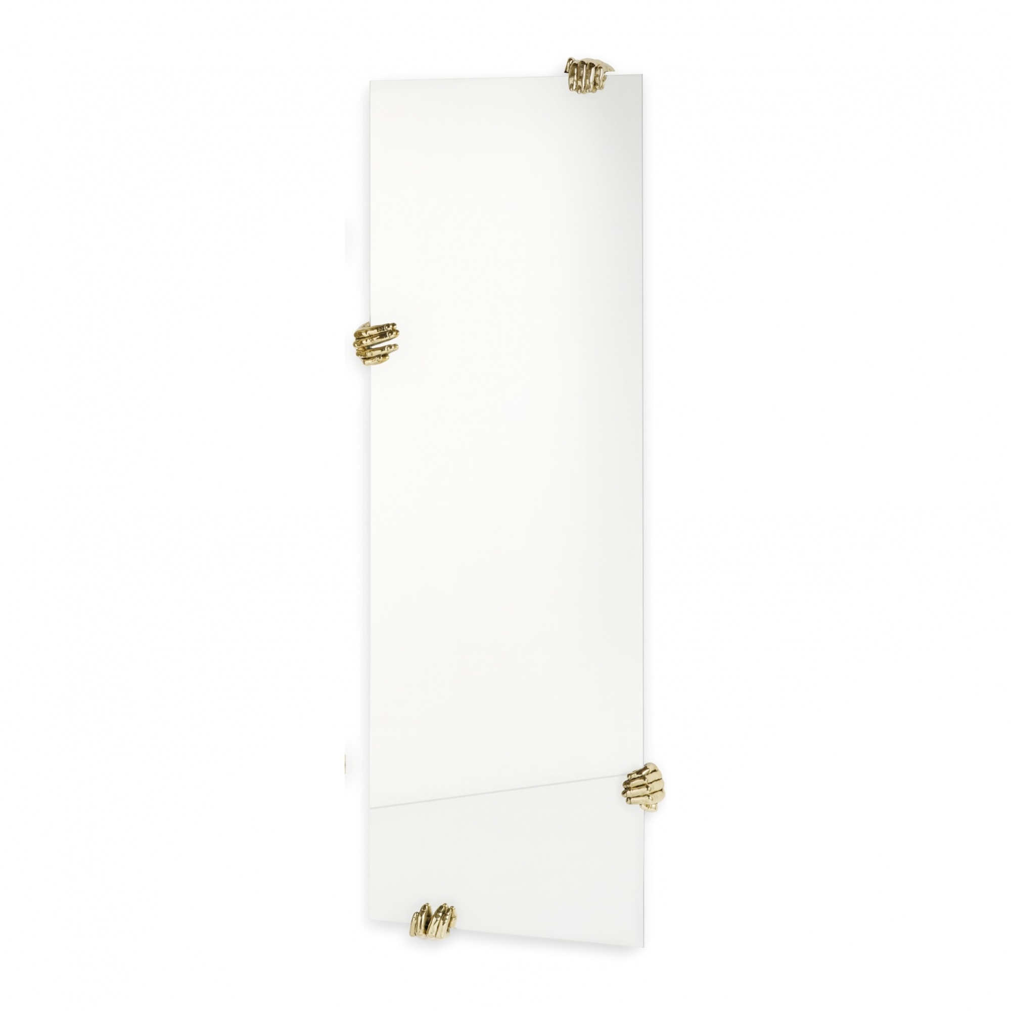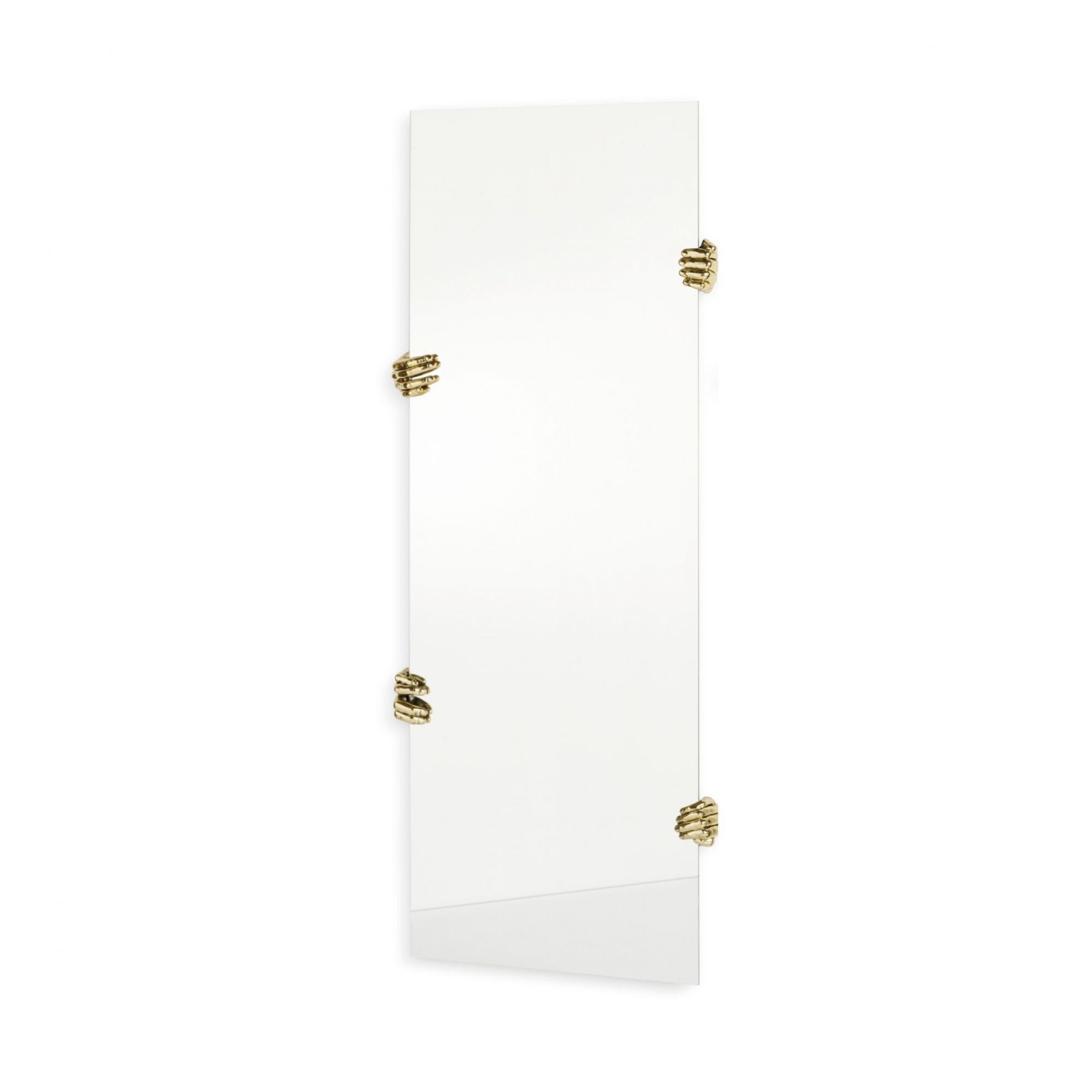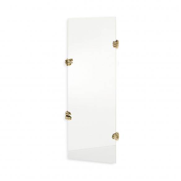 Specchio a parete rettangolare Selfie è realizzato in vetro con mani decorative in fusione di ottone. Le mani possono essere posizionate in modo diverso, enfatizzando la dimensione illusoria dello specchio. Essenziale nel design, questo specchio può essere molto di più, un vero pezzo d'arte! Disegnato da Alessandra Baldereschi per Mogg!