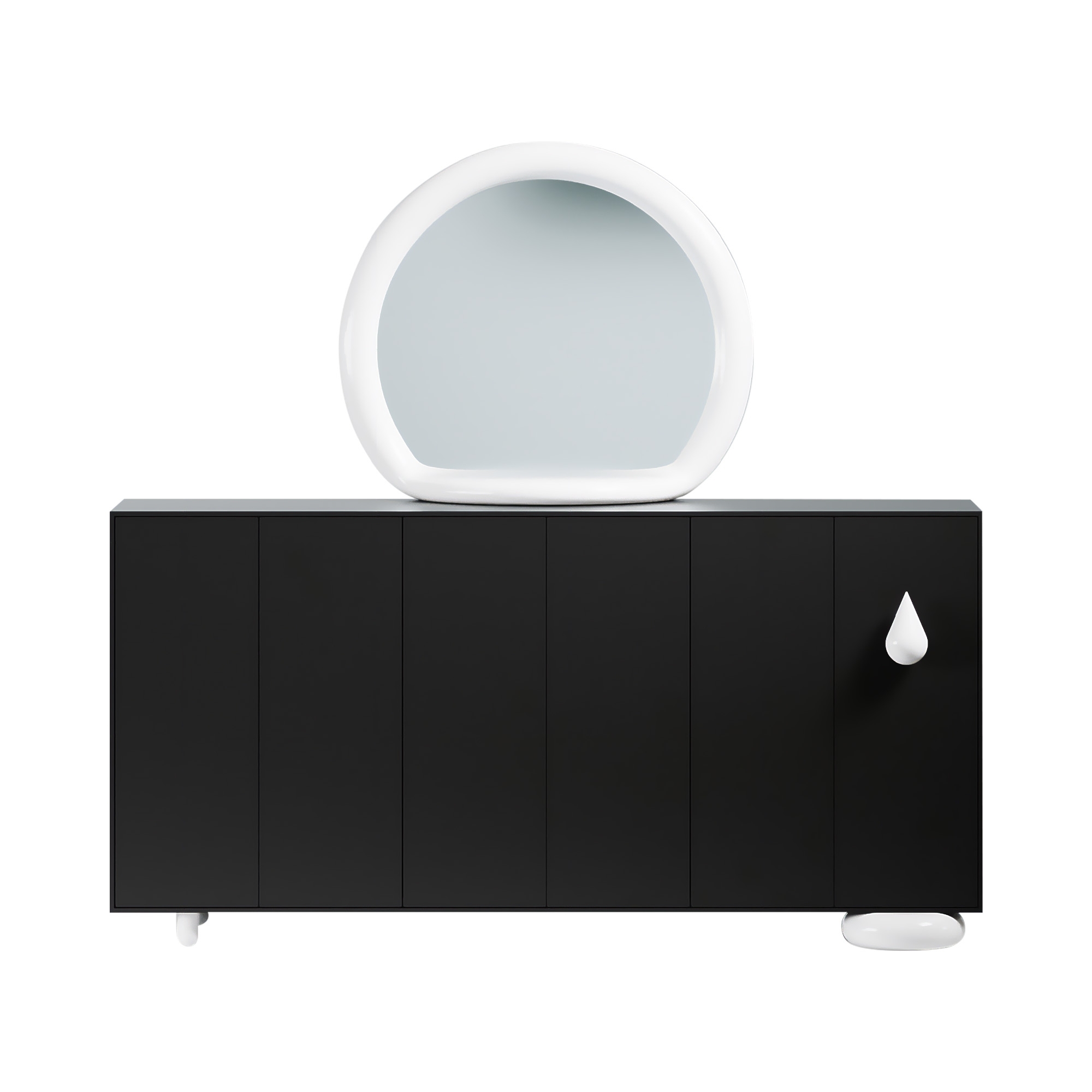 Madia Freeze Me realizzata con struttura in MDF e maniglia a goccia, piedini e specchio (opzionale) in polietilene verniciato, realizzato in rotazionale. Lo specchio può essere bloccato sulla madia in posizione centrale o laterale (dx o sx). Dotato di fori posteriori, lo specchio può essere utilizzato autonomamente, slegato dalla madia e appeso al muro. Maniglia a goccia che, non abbinata alla madia, può essere utilizzata a muro come appendiabiti. Disponibile in vari colori, la madia Freeze Me è un'opera che fonde arredo e cultura pop con uno stile inconfondibile.  Creato da Nika Zupanc per Driade, questo pezzo si inserisce perfettamente nella narrativa della collezione Melt Me, trasportando l'osservatore in un viaggio tra il congelamento simbolico e il magico momento di scioglimento. La madia, abbinata ad un suggestivo specchio, incarna un dialogo tra realtà e riflessione, dove il design incontra la poesia e la praticità. Le sue linee sinuose e il suo carattere distintivo la rendono non solo un mobile di utilità ma una vera e propria dichiarazione d'intenti; un oggetto che trasmuta lo spazio circostante grazie al suo impatto estetico e alla cura meticolosa dei dettagli. Con Freeze Me, Nika Zupanc si conferma un'interprete audace della cultura contemporanea, capace di trasformare il quotidiano in qualcosa di magicamente unico. L'articolo si destina a chi desidera portare nella propria casa o nel proprio ambiente lavorativo un elemento che sia al contempo funzionale, artistico e carico di significato, in grado di suscitare conversazione e ammirazione per la sua raffinata bellezza e la sua forza espressiva. È la scelta ideale per coloro che cercano un pezzo che vada oltre il semplice arredamento, per arricchire ogni ambiente con un tocco di eleganza contemporanea e di poesia visiva.