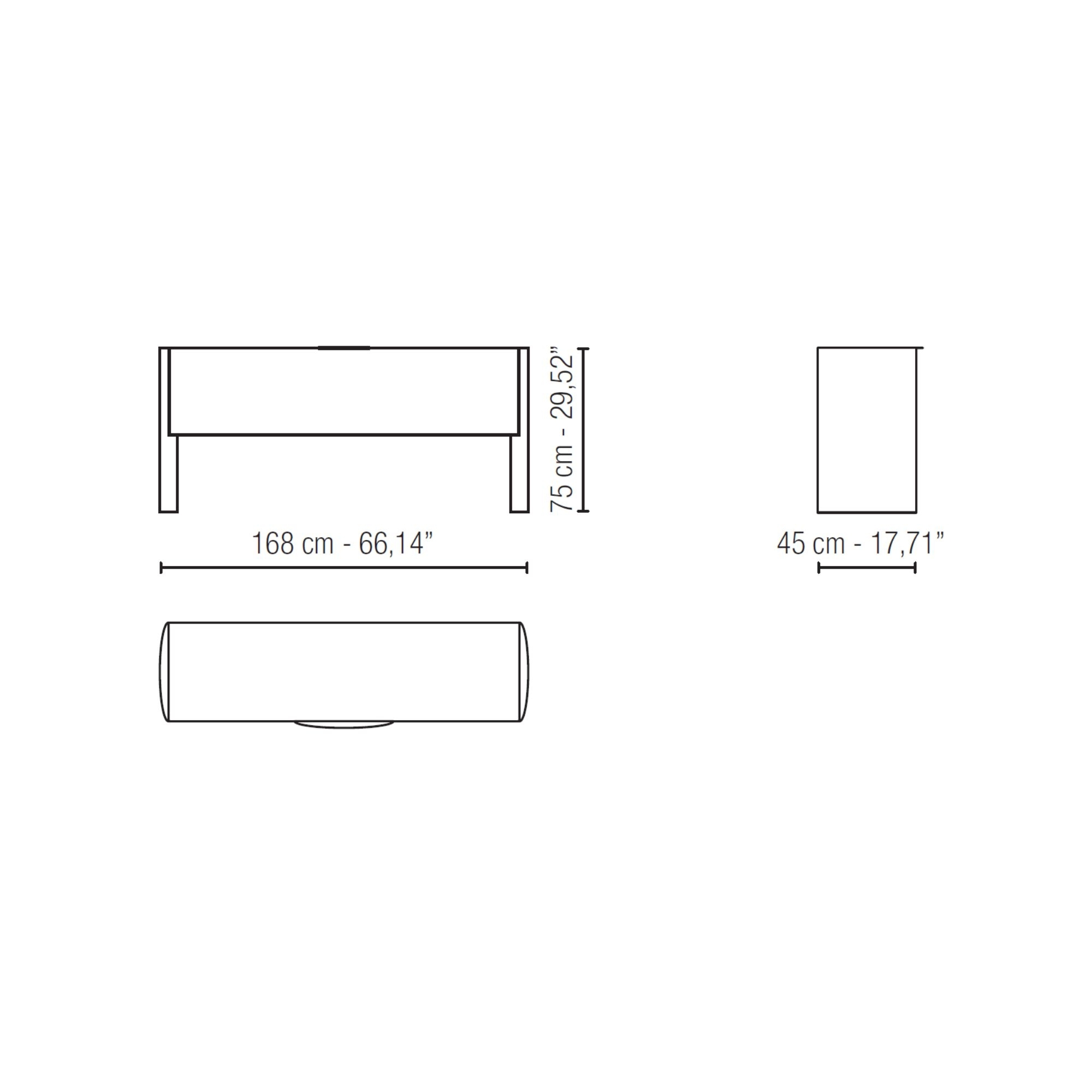 Dimensioni: Lunghezza 168 cm, Profondità 45 cm, Altezza 75 cm