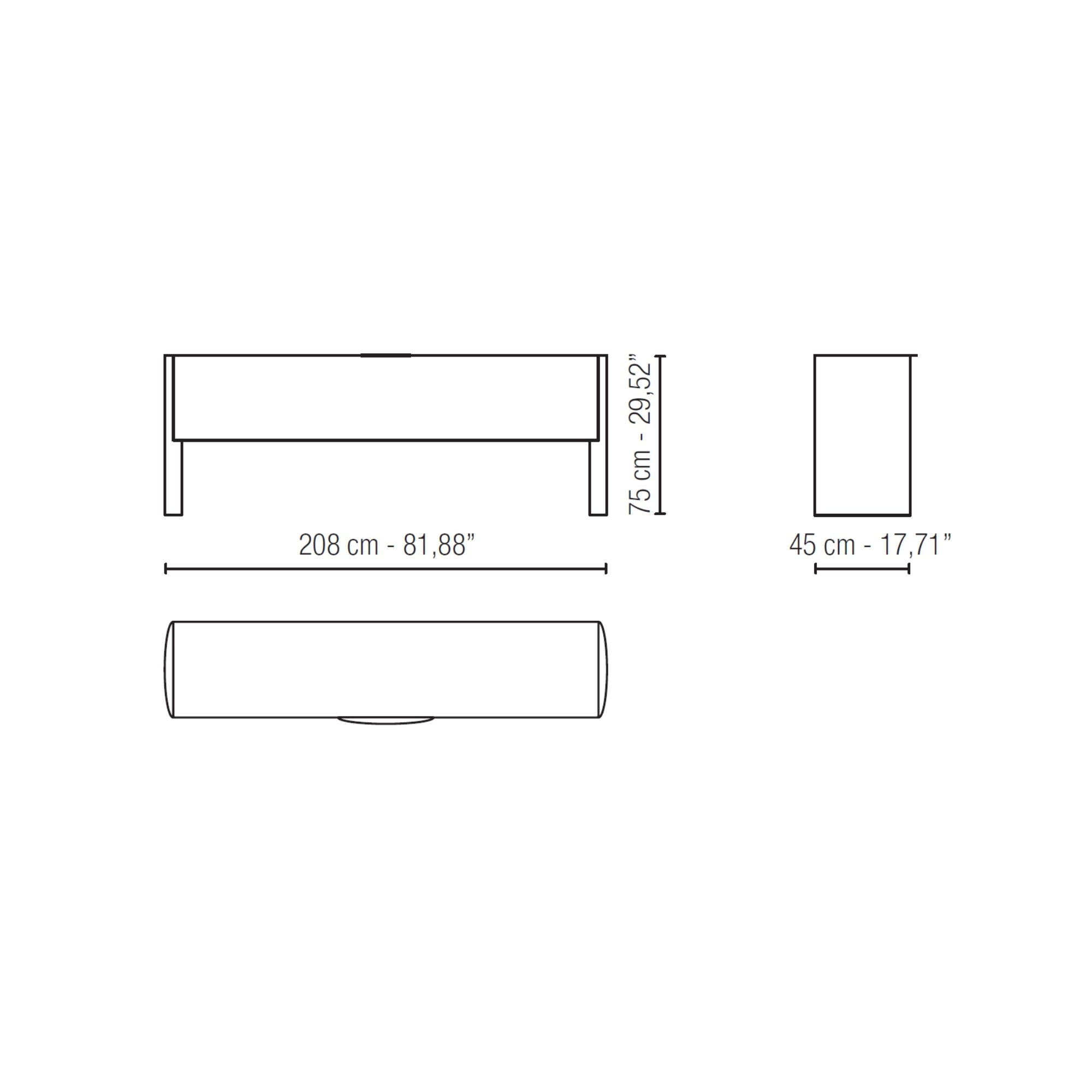 Dimensioni: Lunghezza 208 cm, Profondità 45 cm, Altezza 75 cm