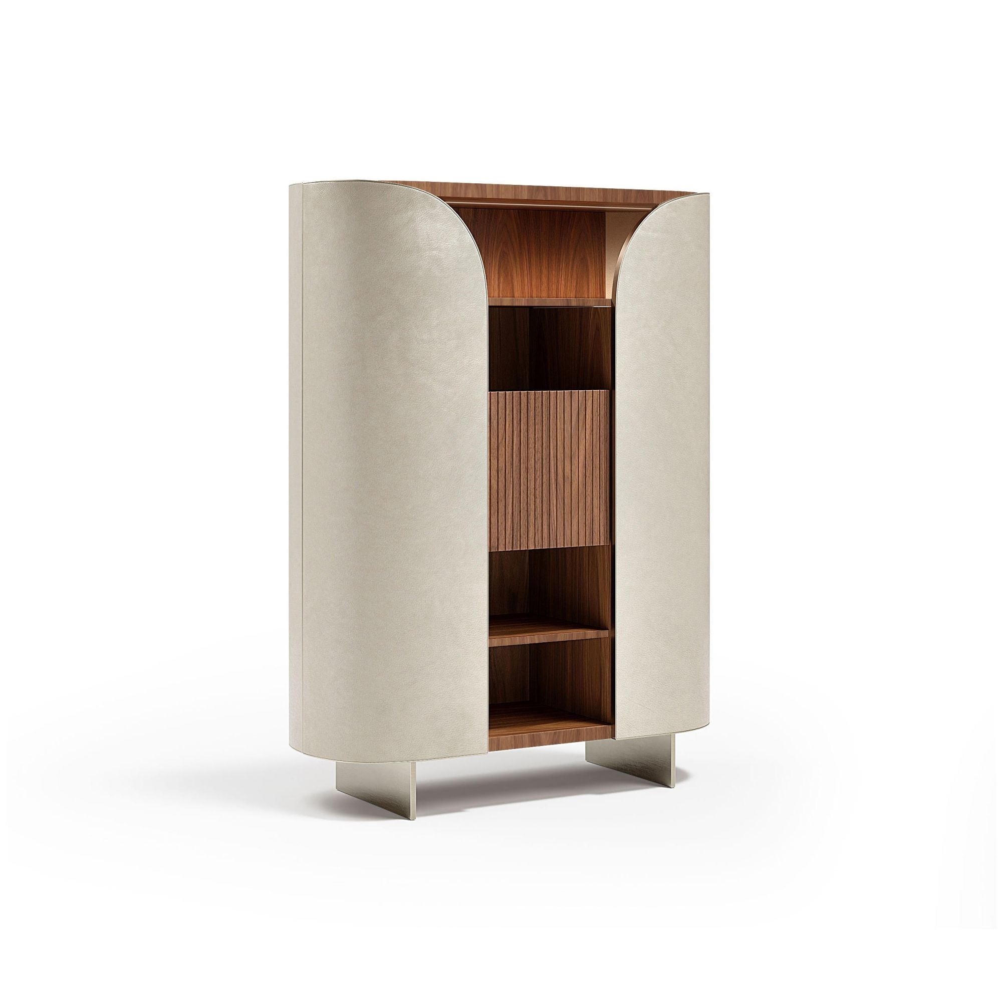 La credenza Duna emerge come un capolavoro di design realizzato da Capital con struttura disponibile sia in essenza che laccata; le due ante possono essere selezionate in essenza, laccato o pelle liscia; l'interno è arricchito da ripiani in vetro bronzato; la sezione aperta è composta da due ripiani personalizzabili in essenza o laccato; il contenitore con due ante è disponibile in essenza o laccato con effetto cannè. Grazie alla sua varietà di combinazioni, Duna può essere abbinata perfettamente a qualsiasi ambientazione: che si tratti del salotto, dello studio oppure della camera da letto, questa credenza trasporta l’atmosfera mozzafiato e la sensazione di libertà trovate nel vasto deserto. Infatti, la credenza incarna l'essenza e l'eleganza selvaggia delle maestose dune del deserto. Duna affronta con eleganza e naturalezza le esigenze quotidiane: i suoi spaziosi interni organizzano gli oggetti e gli accessori essenziali, mentre la facile apertura delle porte è un omaggio all'ingegneria ponderata che si cela dietro la sua bellezza. Disegnata da Boatto Martino Studio per Capital.