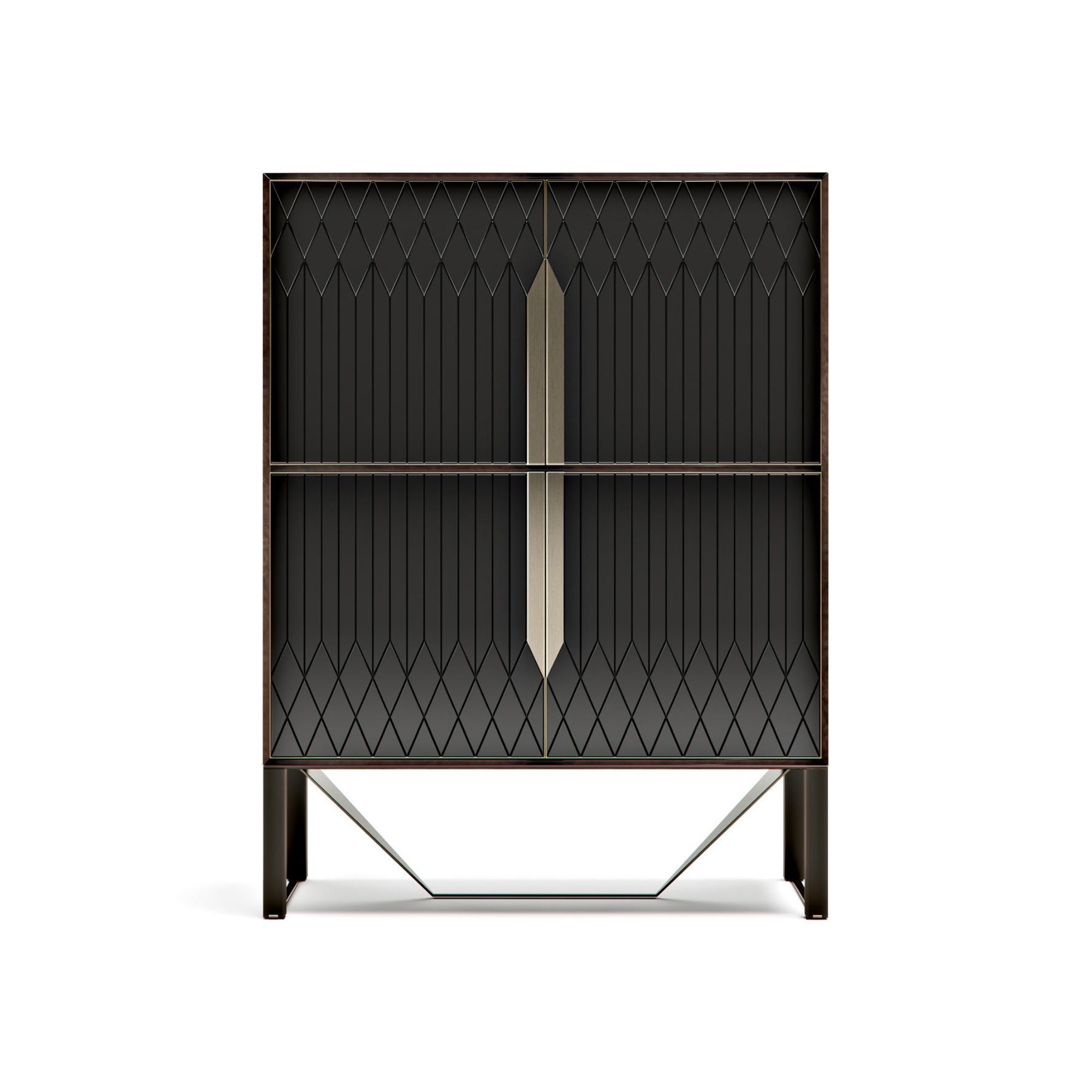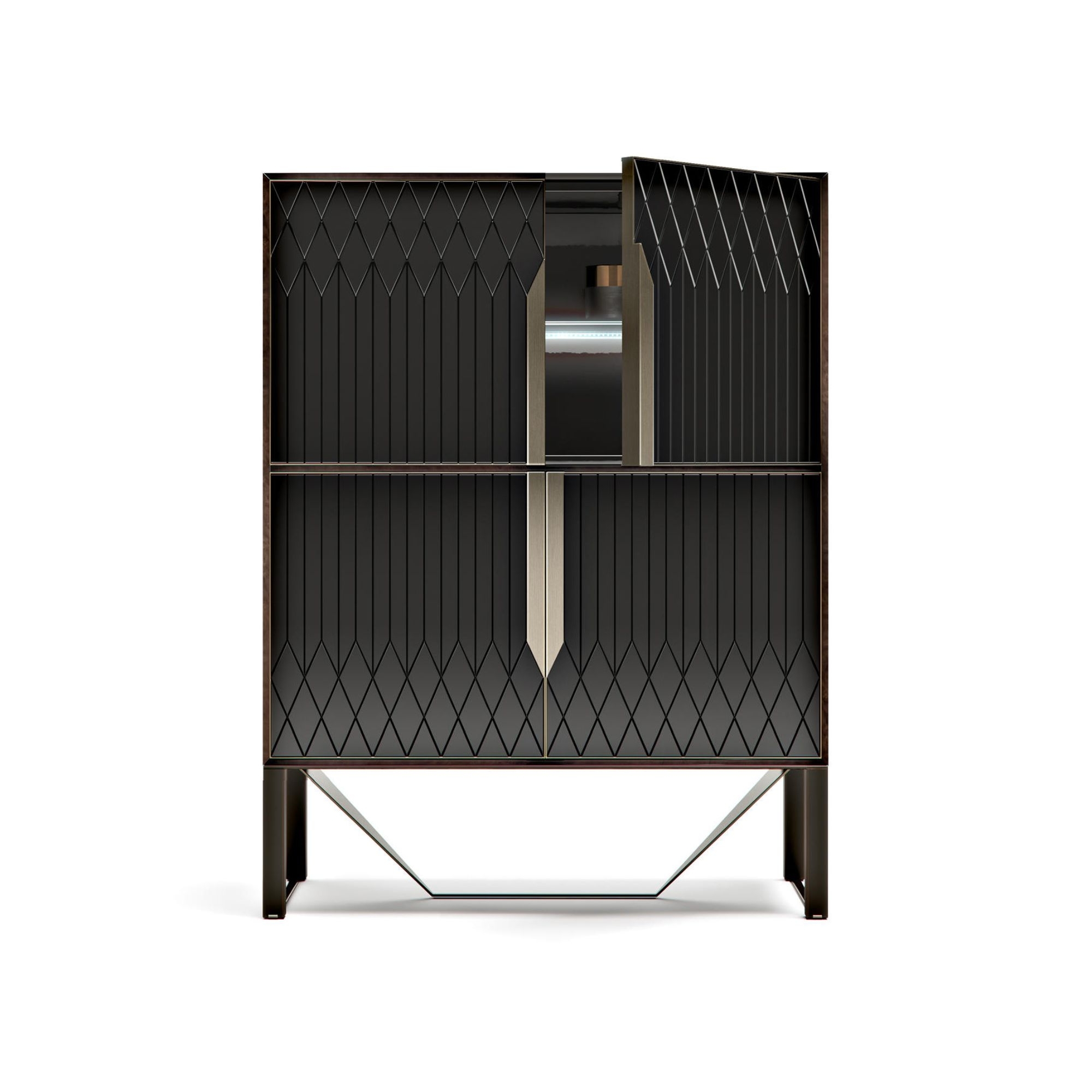 La credenza Prisma con ante pantografate, magistralmente realizzata da Capital, è un capolavoro di design che coniuga eleganza e funzionalità in un unico, straordinario mobile per la tua casa. Questa credenza è stata realizzata con materiali pregiati e resistenti quali legno, marmo e metallo. L'equilibrio tra questi materiali crea un effetto visivo armonioso, che si adatta perfettamente sia agli interni moderni che a quelli più tradizionali: che sia posizionata all'interno di un salotto, uno studio chic, oppure un soggiorno dal design classico, Prisma dona un tocco di classe senza eguali, catturando l'attenzione degli ospiti. All'interno la credenza è altrettanto funzionale, dotata di ripiani interni in cristallo che offrono ampio spazio per l'organizzazione di oggetti decorativi o accessori vari per la casa. Inoltre, Capital offre la possibilità di inserire i LED all'interno della credenza, così da creare un'atmosfera accogliente e sofisticata. Disegnata da Boatto Martino Studio per Capital.