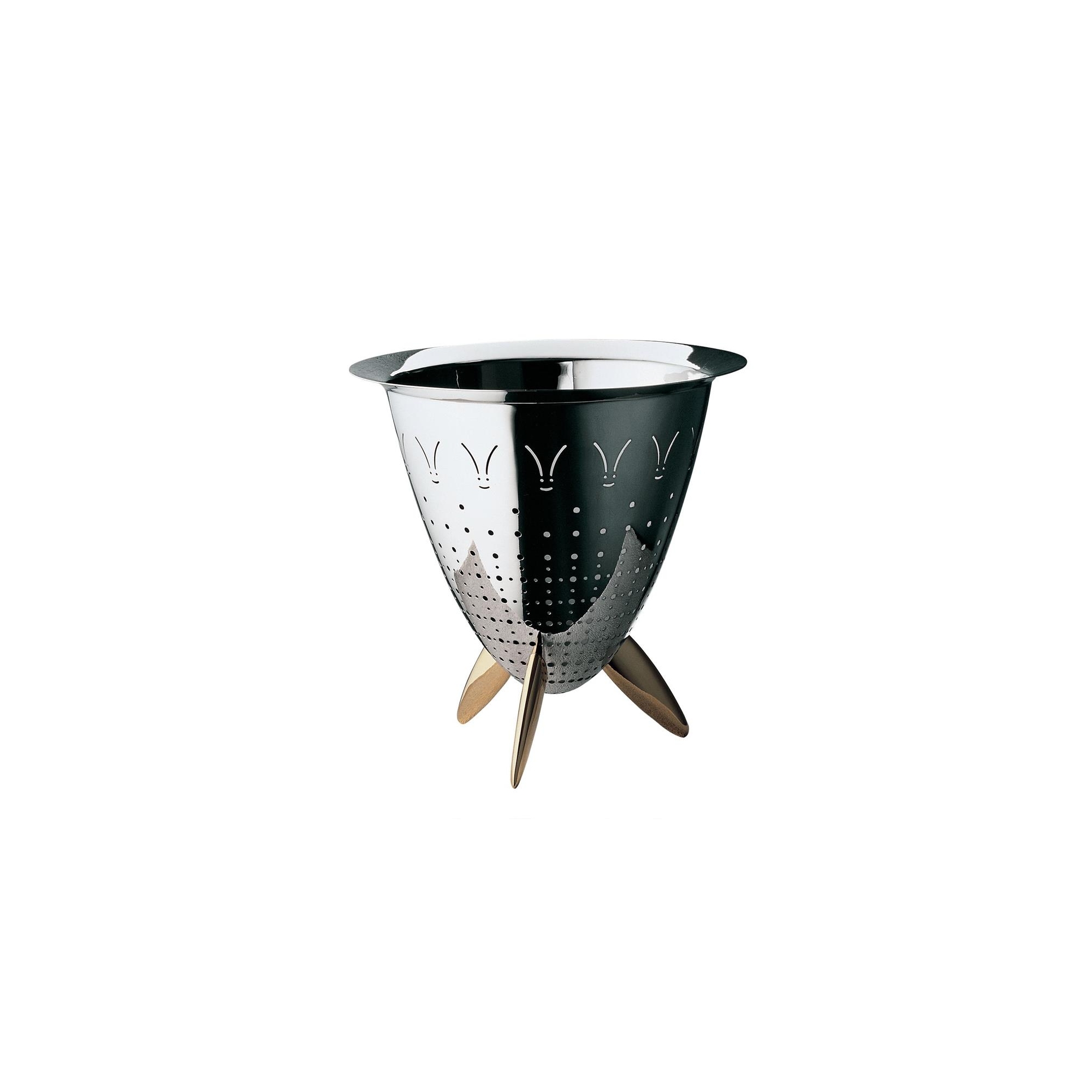 Scolatoio Max Le Chinois realizzato in acciaio inossidabile 18/10 con piedi in fusione di ottone. Molto particolare ed elegante, questo scolatoio è un oggetto ironico che si inserisce nei rituali della cucina. E' bello, è grande e costoso per il suo aspetto estetico, ma caratterizzato da un design di forte impatto, a differenza di qualsiasi altro scolatoio. Disegnato da Philippe Starck per Alessi.