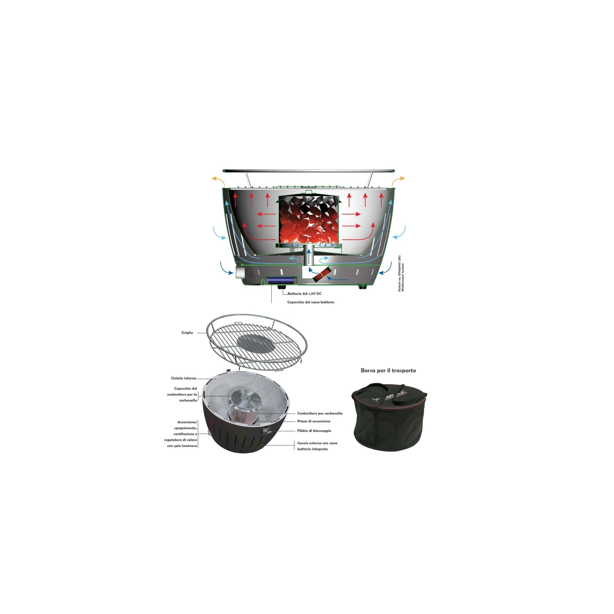 Barbecue da tavolo a carbonella adatto per 10 persone. Realizzato da LotusGrill.