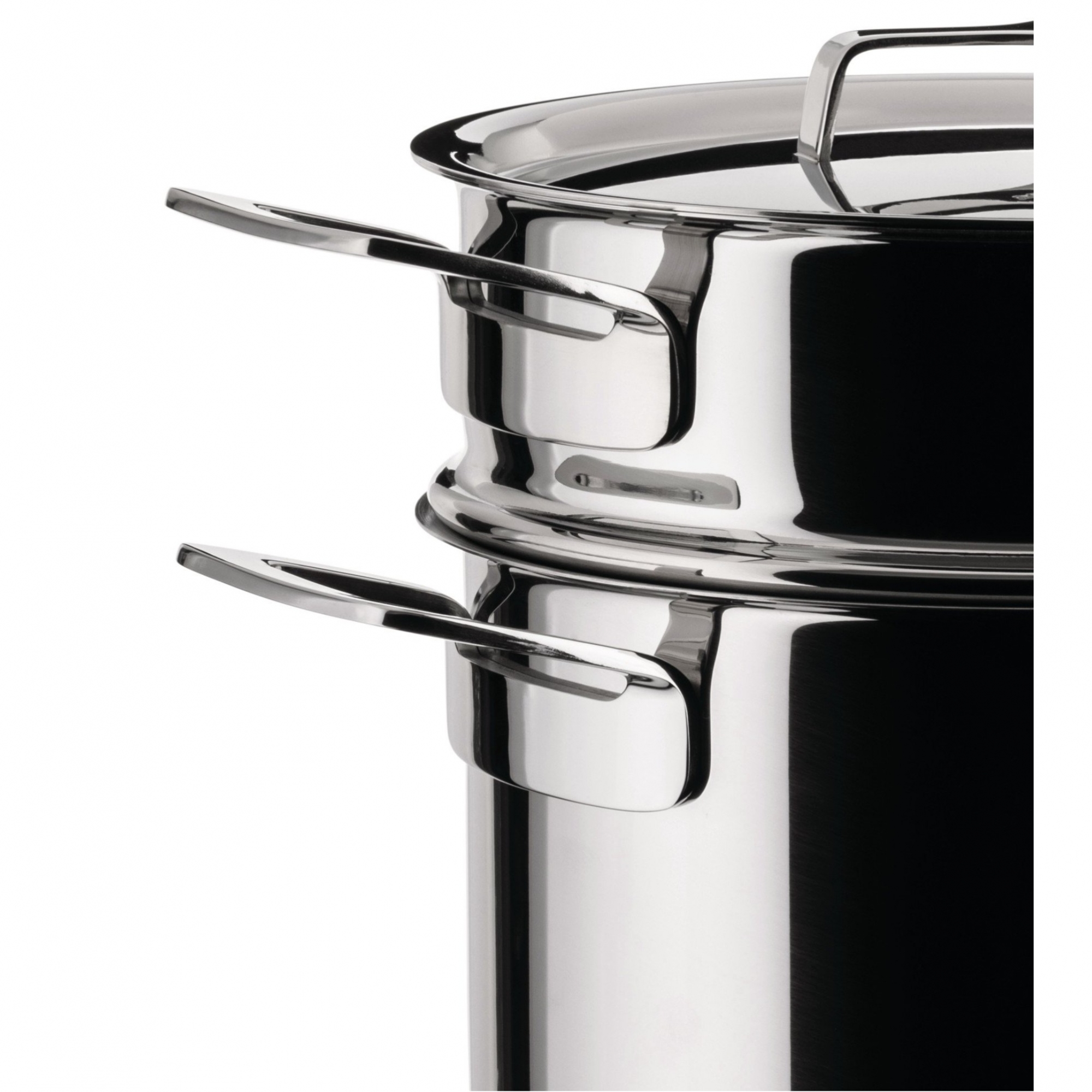 Set di pentola e scolapasta realizzati in acciaio inossidabile 18/10. Ideale per cucinare qualsiasi tipo di pasta in modo pratico, questo splendido set comprendente tre elementi indispensabili in cucina (pentola, scolapasta e coperchio) si presenta con un design lineare e pulito, con cura nei minimi dettagli. Il fondo della pentola in acciaio magnetico la rende adatta anche per la cottura a induzione. Disegnato da Jasper Morrison per Alessi.