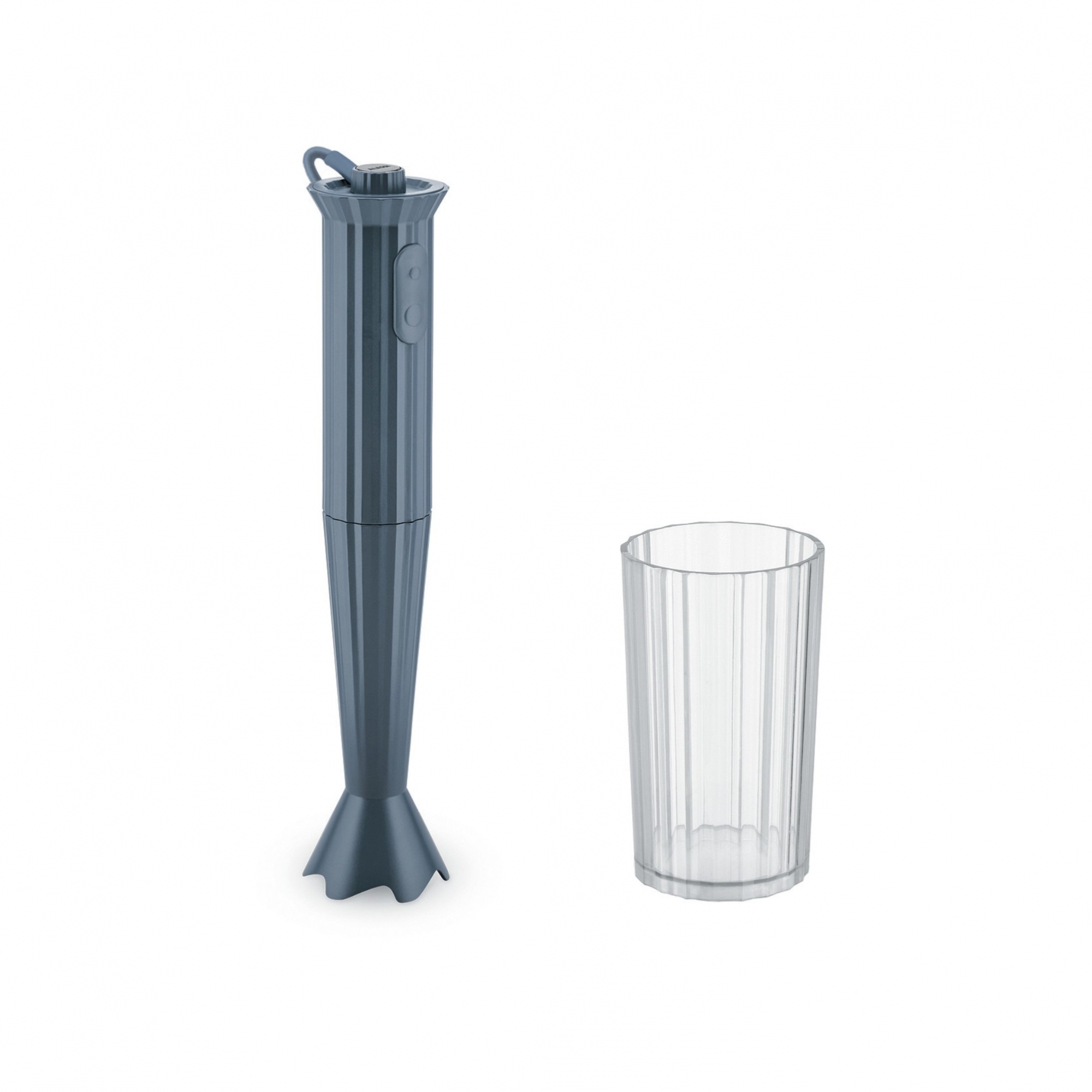 Frullatore a immersione Plissé realizzato in resina termoplastica senza spina. Il Frullatore a immersione Plissé ha una capacità di 700 ml e può essere lavato in lavastoviglie. Inoltre, è disponibile anche in una confezione completa, che include un bicchiere per mescolare, una frusta e un tritatutto universale. Questo frullatore è un oggetto che ricorda i drappeggi di un elegantissimo abito da sera. Il design plastico e affascinante, impreziosisce le cucine di ogni stile e le quattro varianti colore lo rendono adattabile ad ogni tipo di arredamento. Disegnato da Michele De Lucchi per Alessi.