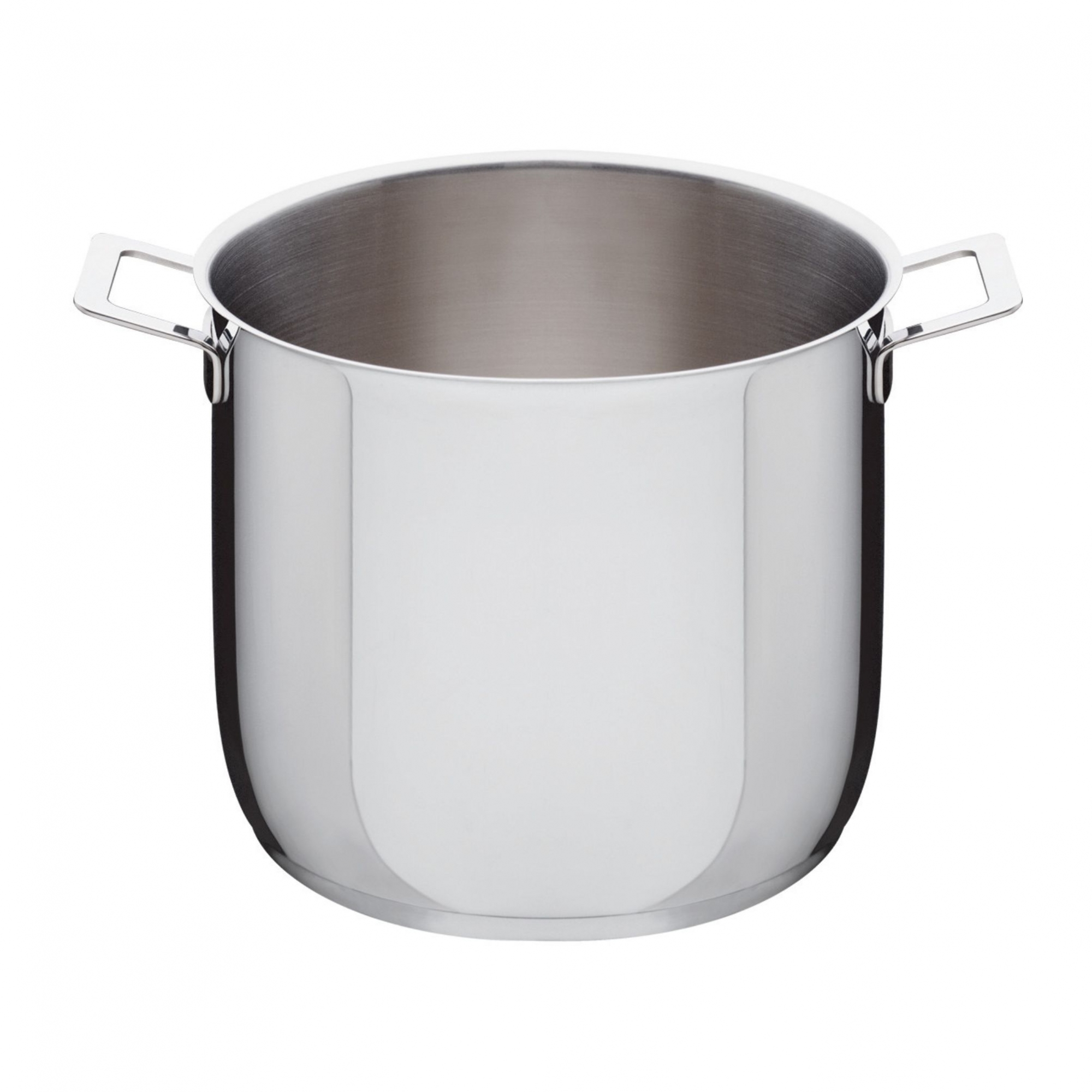 Pentola in acciaio Pots&Pans in accciaio inossidabile 18/10 lucido dal diametro di 24 cm. Fondo in acciaio magnetico adatto anche alla cottura a induzione, disegnata da Jasper Morrison per Alessi.