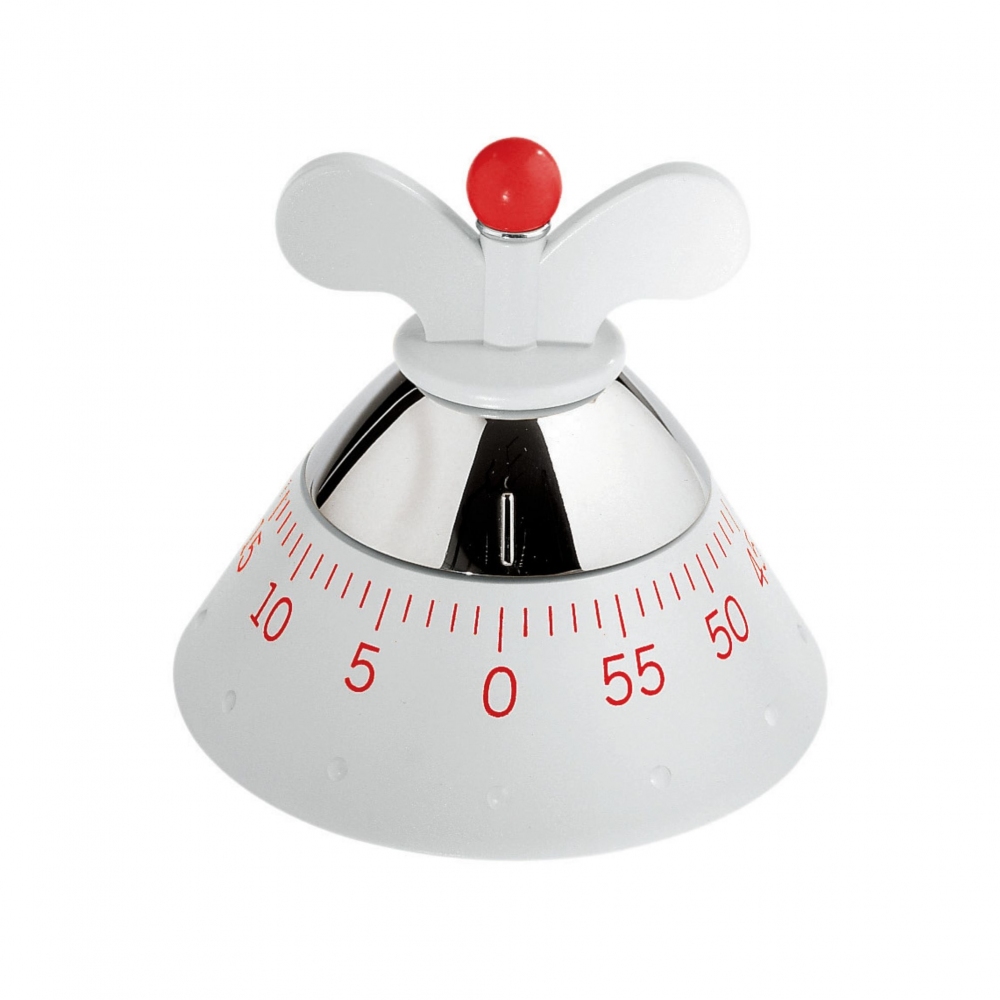 Contaminuti Kitchen Timer realizzato in resina termoplastica. Disponibile nei colori azzurro, nero e bianco, Kitchen Timer è il nostro perfetto alleato in cucina, con il movimento meccanico che permette di tenere il conto dei minuti necessari per la cottura della pasta ma non solo. Molto simpatico ed elegante, Kitchen Timer unge anche da complemento d'arredo per la tua cucina! Disegnato da Michael Graves per Alessi.