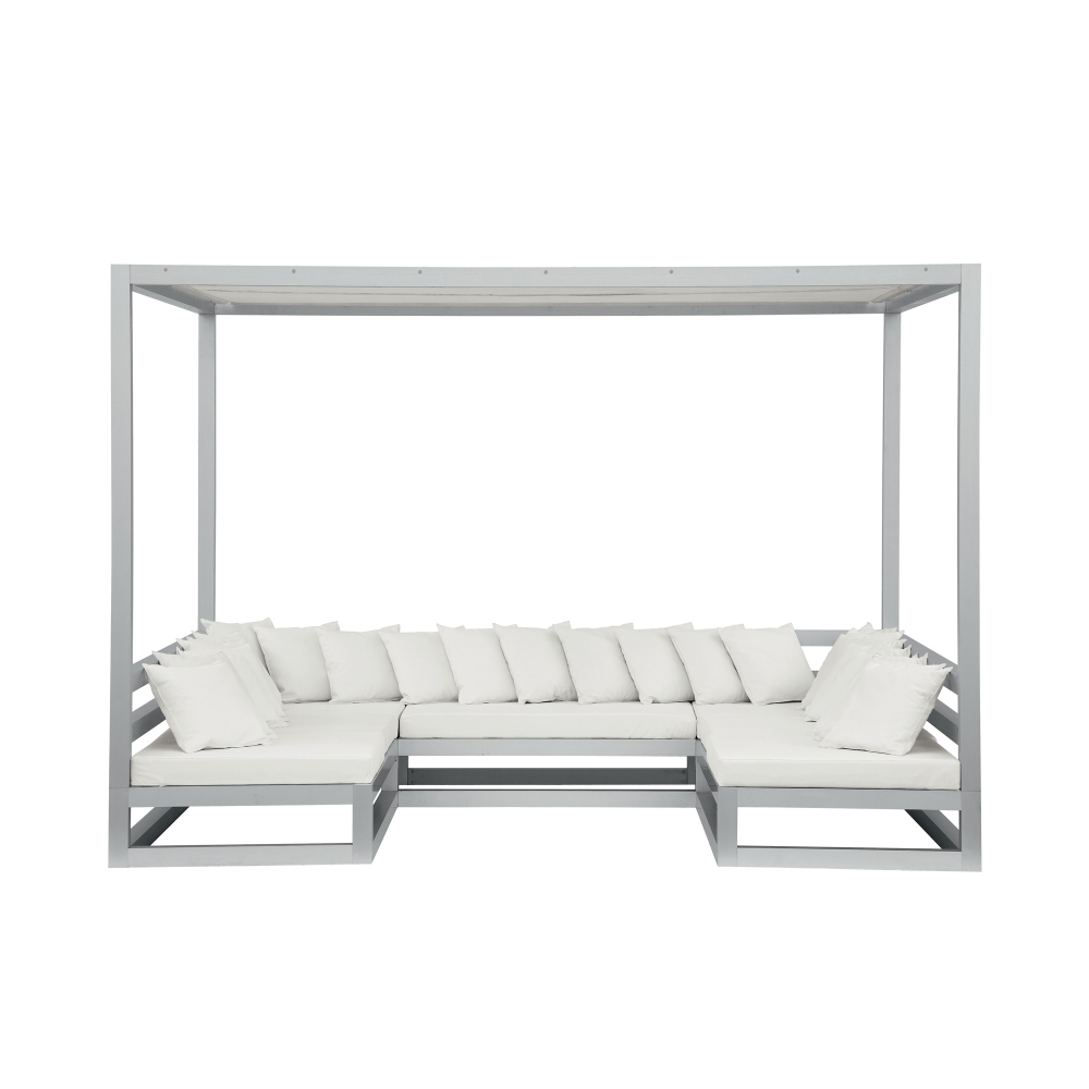 Divano outdoor Pergola realizzato da Gandia Blasco in alluminio anodizzato o termolaccato in bronzo, bianco, grigio cemento, nero, sabbia, con tele in tessuto plastico, seduta e schienale rivestiti in tessuto impermeabile. Questo divano incarna l'essenza del design e della comodità. Pergola outdoor è disponibile in tantissime colorazioni, il che lo rende ideale per essere abbinato a qualsiasi ambientazione moderna, contemporanea, classica o minimalista: che sia posizionato in un giardino verde elegante oppure in un ampio terrazzo dal design urban, Pergola sarà sempre al centro degli sguardi e delle conversazioni, donando un tocco di classe a ogni spazio. La seduta è estremamente comoda e resistente alle intemperie (pioggia, caldo, umidità); ciò fa del divano outdoor Pergola un vero e proprio investimento in termini di longevità. Anche i cuscini sono stati progettare per offrire il massimo del comfort e sono stati realizzati con materiali resistenti agli agenti atmosferici. Vuoi creare la tua oasi di benessere all'interno della tua abitazione? Hai una piscina in giardino ma ti manca qualcosa? Acquista il divano outdoor Pergola di Gandia Blasco proprio qui, su Newpop.it! Disegnato da José A. Gandía-Blasco Canales per Gandia Blasco.