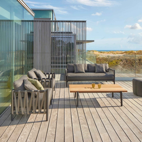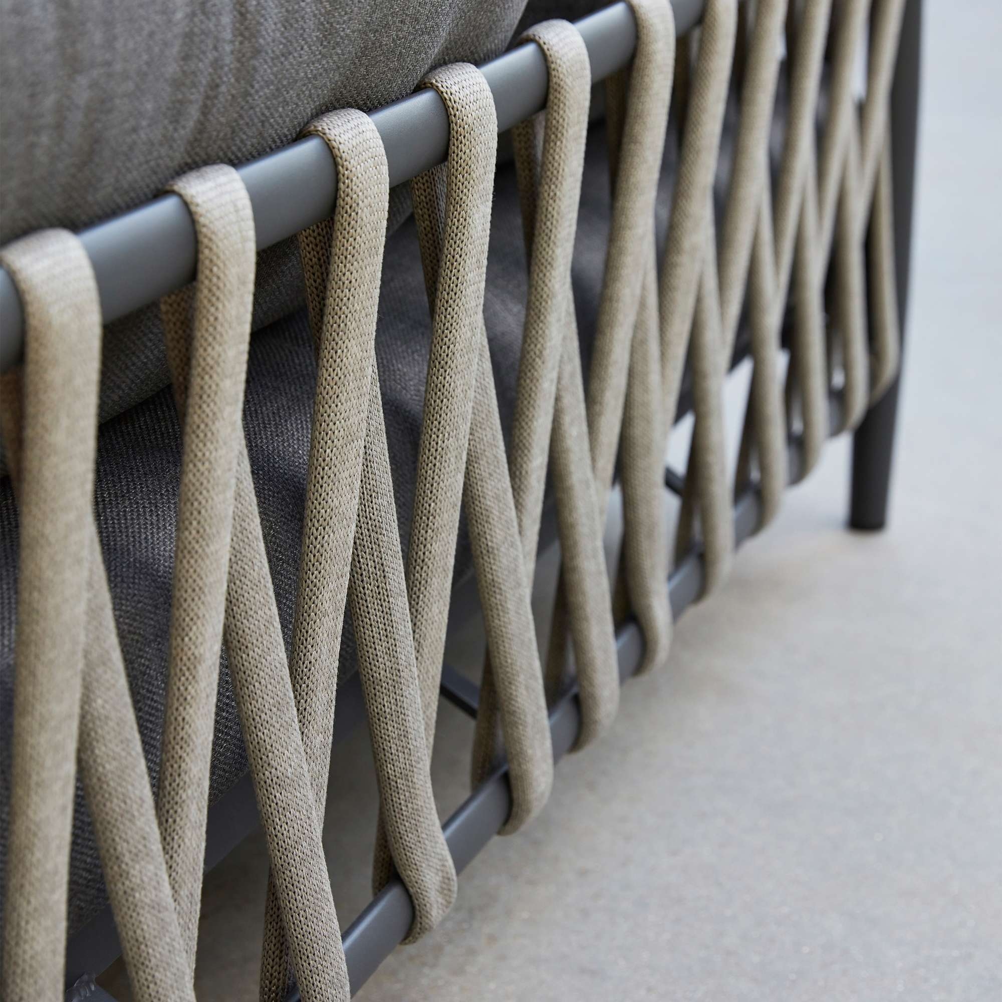 Il divano Switch Rope da 2.5 posti, con cuscini, è un gioiello di comfort realizzato in materiali di altissima qualità come alluminio, tessuto e corda. La sua struttura in alluminio è robusta ma leggera, garantendo una lunga durata al divano e grande facilità di manutenzione. Munito di cuscini straordinariamente soffici come le nuvole, il divano Switch Rope porta l'intimità dell'interno di casa tua all'esterno. Switch Rope invita tutti i tuoi familiari e i tuoi amici a passare dei momenti di benessere. Inoltre, il divano Switch Rope abbellisce qualsiasi spazio outdoor o indoor grazie al suo stile ineguagliabile. Può essere posizionato in un terrazzo ombreggiato, in giardino o in un salotto interno, Switch Rope sarà perfetto, diventando un invito irresistibile a momenti di serenità e convivialità. Il divano Switch Rope da 2,5 posti trasforma l'atmosfera in calda e accogliente, ed è in grado di creare delle oasi di puro relax.
