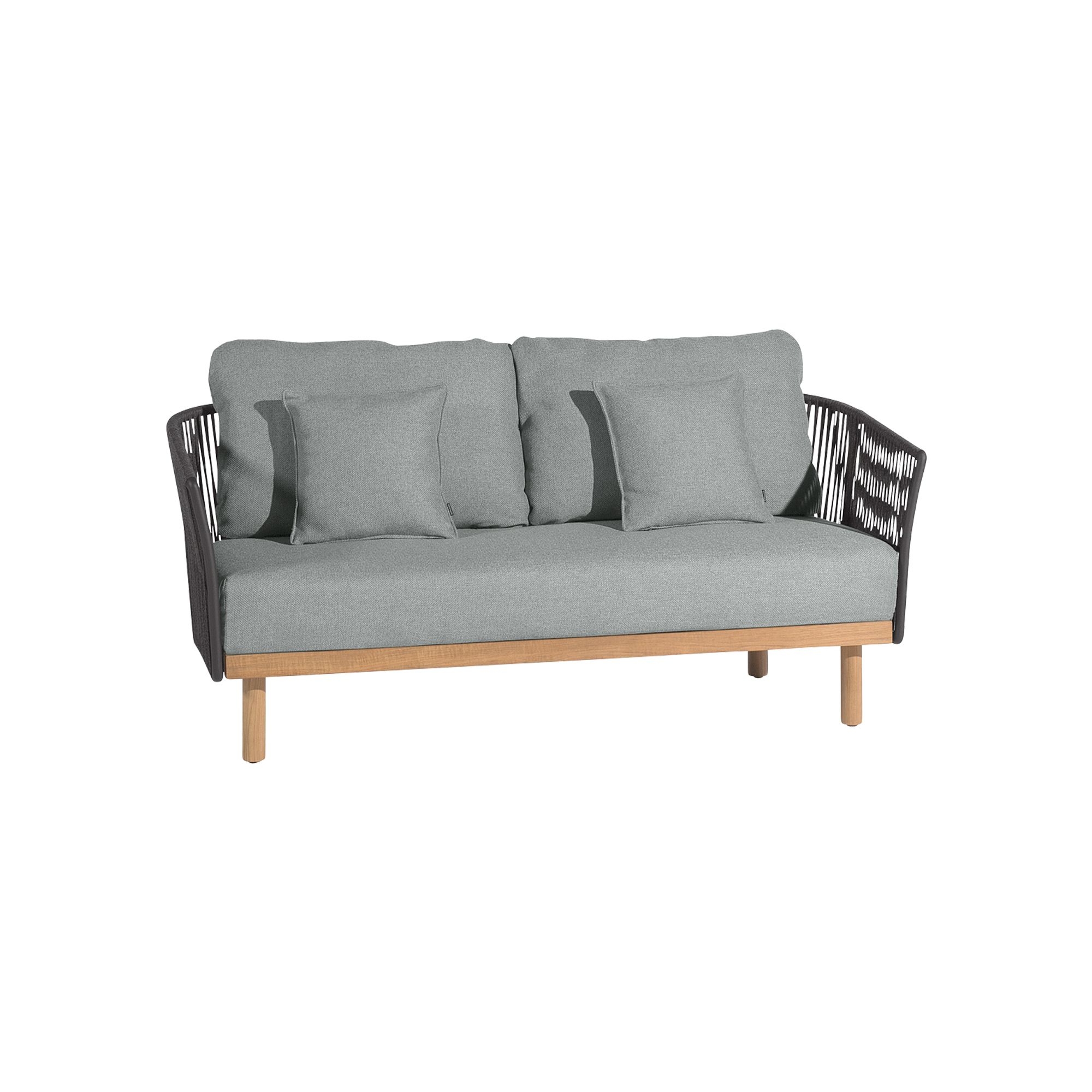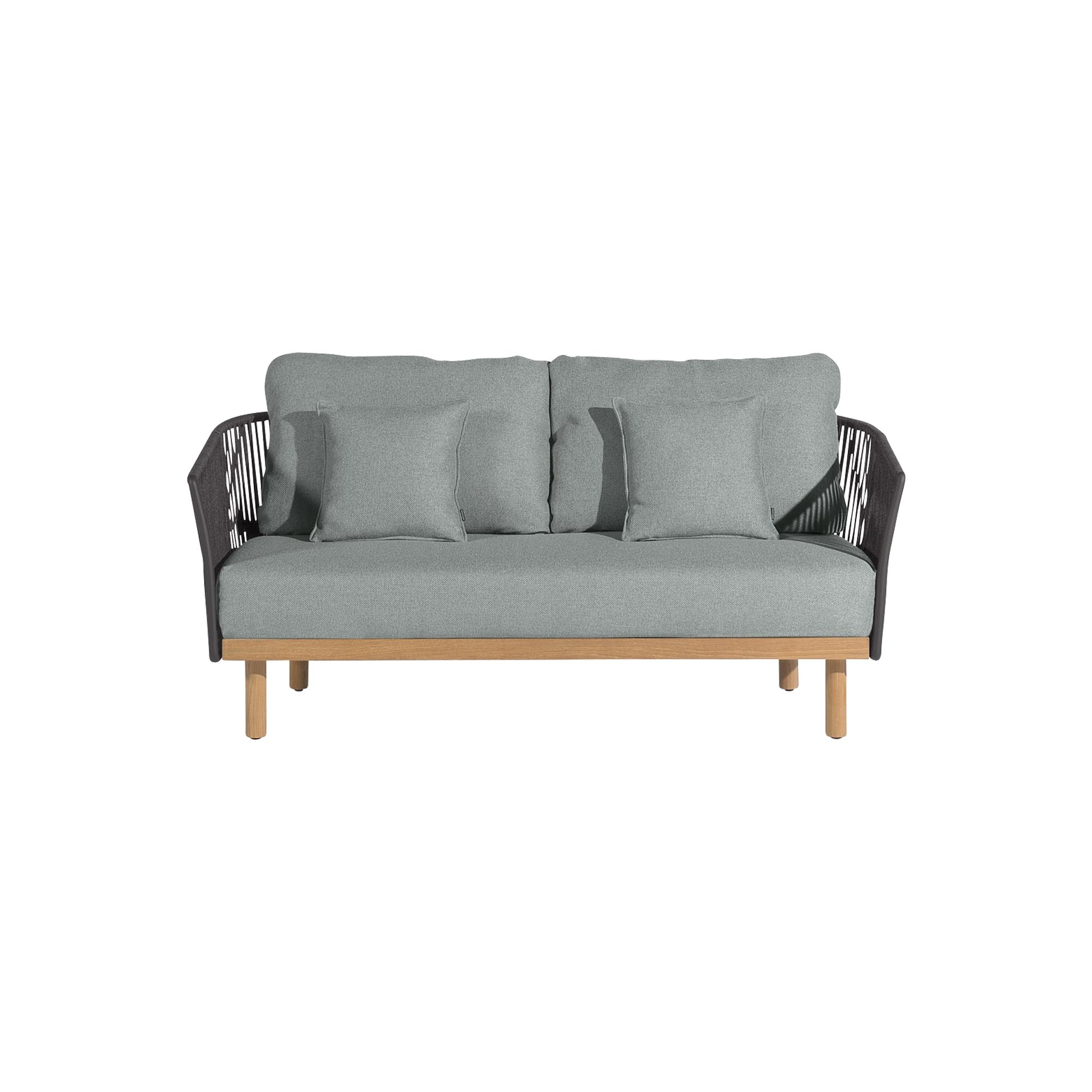 Il divano 2 posti con cuscini Newport ha una struttura resistente in alluminio, con cinghie intrecciate e legno Teak che insieme creano un'atmosfera lussuosa per qualsiasi ambiente, sia in contesti di design contemporaneo, che in ambienti esterni tradizionali, senza perdere l'identità raffinata. Il divano Newport 2 posti è personalizzabile in quattro bellissime finiture e colorazioni, permettendo di trovare il giusto equilibrio con lo stile della tua casa. I morbidissimi cuscini sono realizzati per esterni, in grado di resistere ai raggi UV e ai diversi agenti atmosferici come caldo e umidità. Inoltre, i cuscini del divano Newport sono facilmente removibili per la manutenzione. Il divano non è ingombrante, e si impone come soluzione ottimale per chi cerca un pezzo di arredo in grado di fondere eleganza dei materiali e resistenza per affrontare la vita all'aperto, senza rinunciare al relax assoluto. Perditi nel comfort profondo e invitante del divano Newport 2 posti con cuscini, un classico senza tempo che regala all'ambiente un oasi di pace e di benessere.